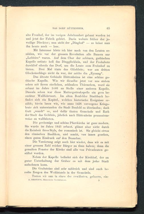 Mit Interesse hörte ich hier noch von den Leuten er-zählen, wie vor der grossen Revolution alle Bauern nur„Lehbüre“ waren. Auf dem Chor der schönen, gothischenKapelle ertönte hell das Dingglöcklein, und der Frohnbotedurchlief eilends das Dorf, um die Leute zum Frohnhof zubieten. Drei Mal tönte das Glöcklein; wer am drittenGlockenschlage nicht da war, der zahlte die „Eynung“.