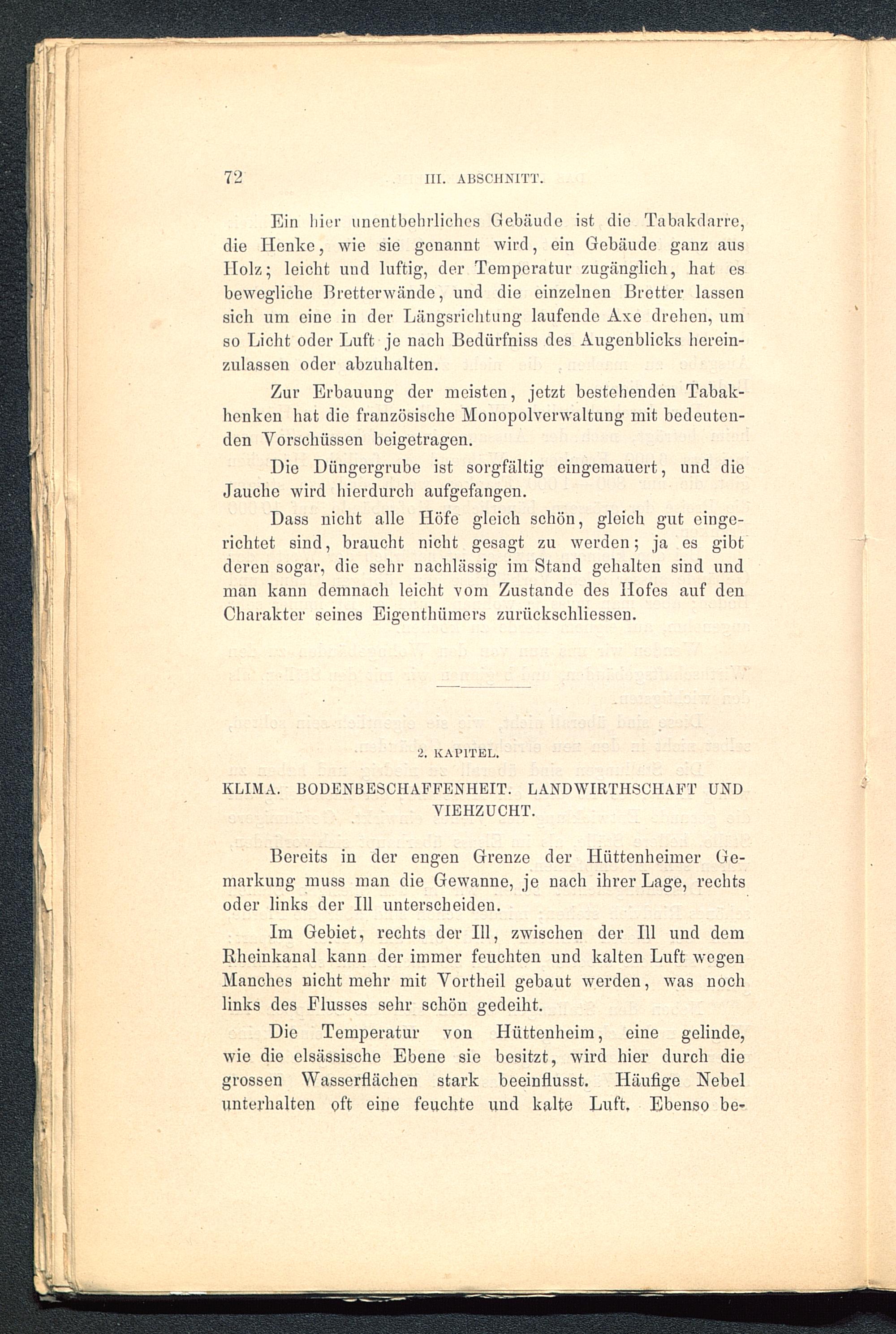 Die Temperatur von Hüttenheim, eine gelinde,wie die elsässische Ebene sie besitzt, wird hier durch diegrossen Wasserflächen stark beeinflusst. Häufige Hebelunterhalten oft eine feuchte und kalte Luft, Ebenso be-