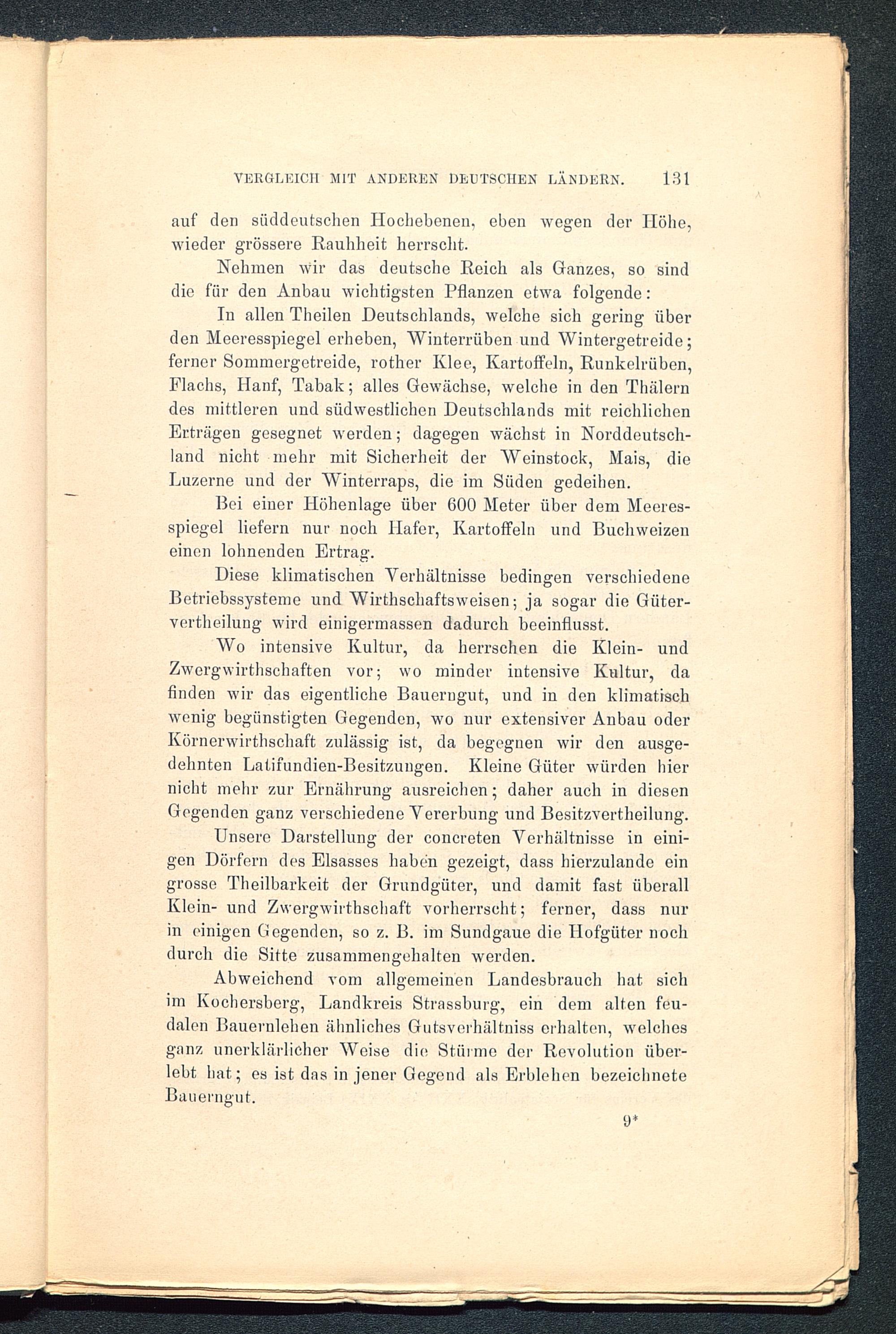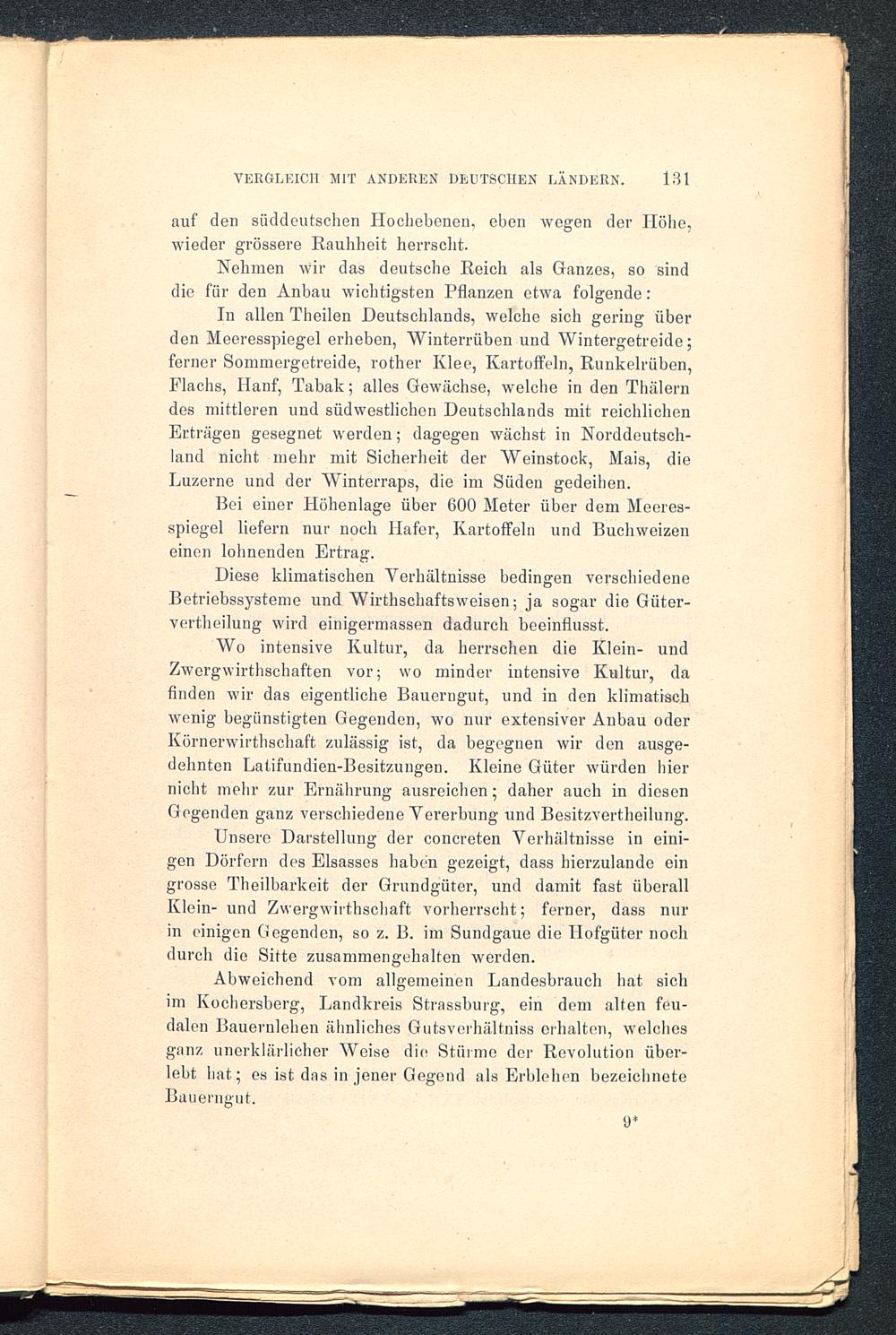 Abweichend vom allgemeinen Landesbrauch hat sichim Kochersberg, Landkreis Strassburg , ein dem alten feu-dalen Bauernlehen ähnliches Gutsverhältniss erhalten, welchesganz unerklärlicher Weise die Stürme der Revolution über-lebt hat; es ist das in jener Gegend als Erblehen bezeichneteBauerngut.