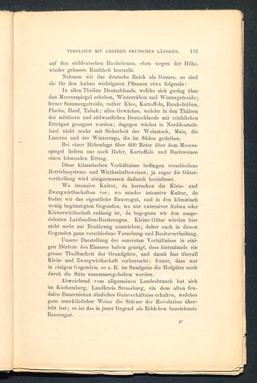 Unsere Darstellung der concreten Verhältnisse in eini-gen Dörfern des Elsasses haben gezeigt, dass hierzulande eingrosse Theilbarkeit der Grundgüter, und damit fast überallKlein- und Zwergwirthschaft vorherrscht; ferner, dass nurin einigen Gegenden, so z. B. im Sundgaue die Hofgüter nochdurch die Sitte zusammengehalten werden.