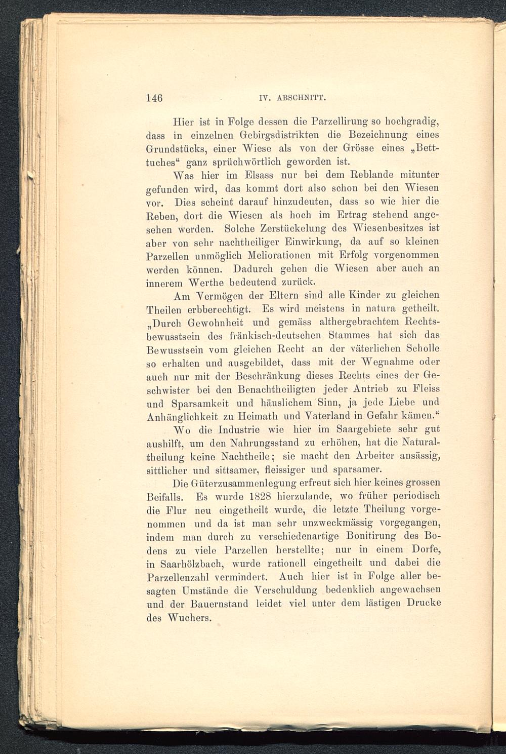 liier ist in Folge dessen die Parzellirung so hochgradig,dass in einzelnen Gebirgsdistrikten die Bezeichnung einesGrundstücks, einer Wiese als von der Grösse eines „Bett-tuches“ ganz sprüchwörtlich geworden ist.