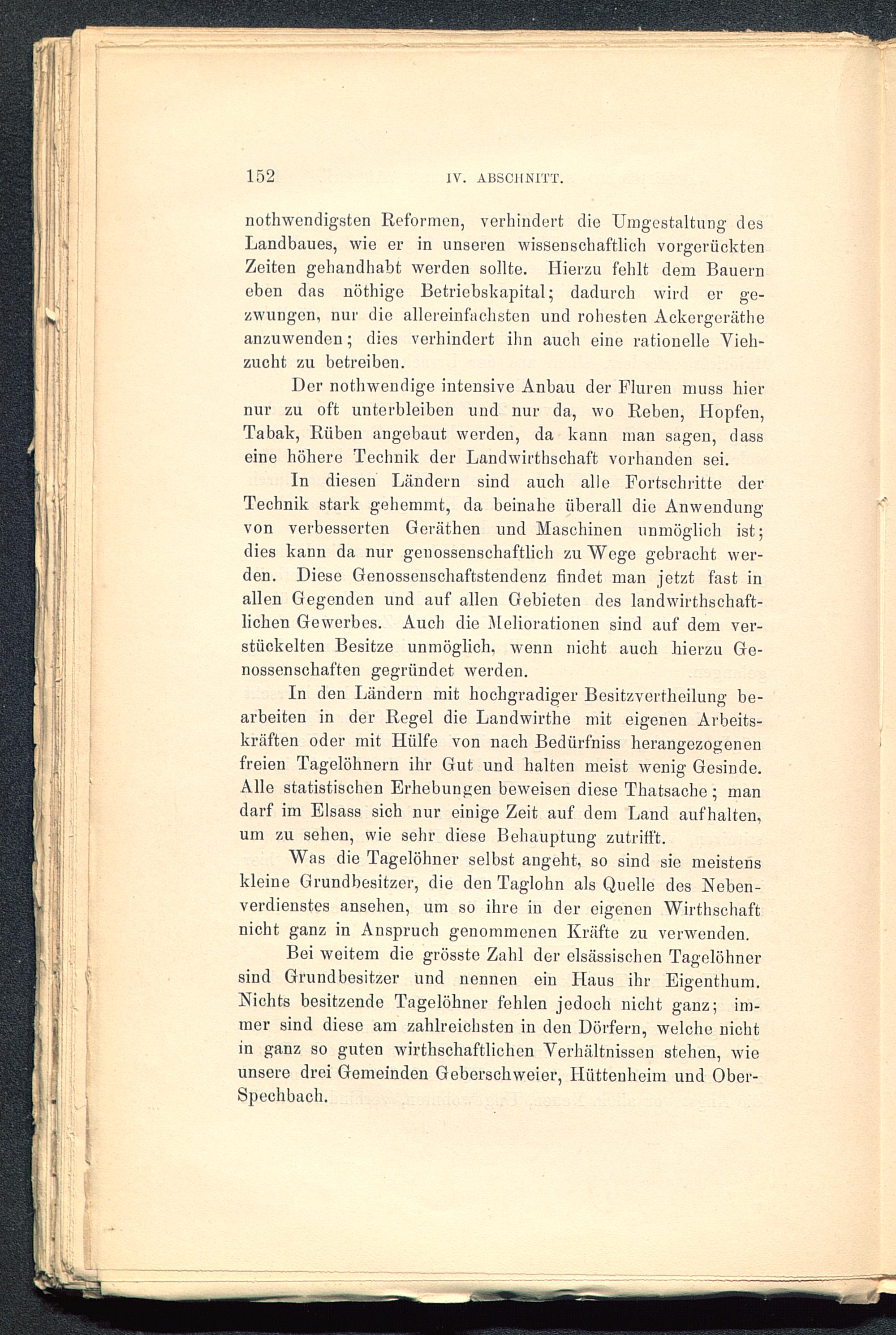 Bei weitem die grösste Zahl der elsässischen Tagelöhnersind Grundbesitzer und nennen ein Haus ihr Eigenthum.Nichts besitzende Tagelöhner fehlen jedoch nicht ganz; im-mer sind diese am zahlreichsten in den Dörfern, welche nichtin ganz so guten wirtschaftlichen Verhältnissen stehen, wieunsere drei Gemeinden Geberschweier, Hüttenheim und Ober-Spechbach.