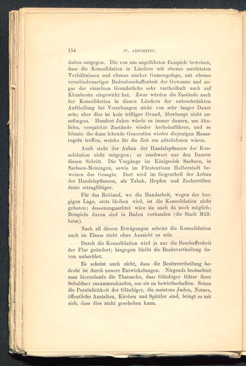 dation entgegen. Die von uns angeführten Beispiele beweisen,dass die Konsolidation in Ländern mit ebenso zerrüttetenVerhältnissen und ebenso starker Gemengelage, mit ebensoverschiedenartiger Bodenbeschaffenheit der Gewanne und so-gar der einzelnen Grundstücke sehr vortheilhaft auch aufKleinbcsitz cingewirkt hat. Zwar würden die Zustände nachder Konsolidation in diesen Ländern der unbeschränktenAuftheilung bei Vererbungen nicht von sehr langer Dauersein; aber dies ist kein triftiger Grund, überhaupt nicht an-zufangen. Hundert Jahre würde es immer dauern, um ähn-liche, verquickte Zustände wieder herbeizuführen, und eskönnte die dann lebende Generation wieder diejenigen Maass-regeln treffen, welche für die Zeit am nützlichsten wären.