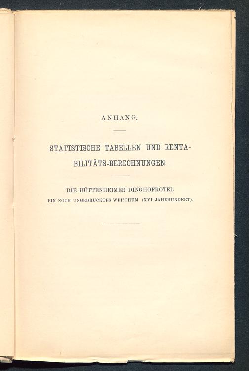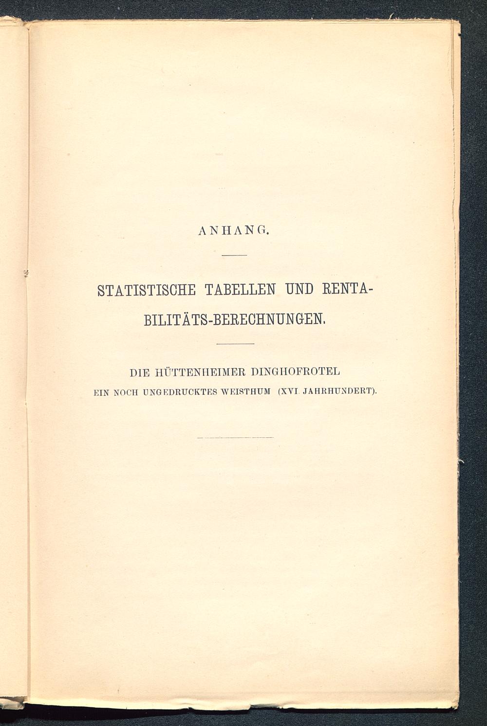 ANHANGSTATISTISCHE TABELLEN UND RENTA-BILITÄTS -BERECHNUNGEN.DIE IIÜTTENIIEIMER DING HOFROTELEIN NOCH UNGEDRUCKTES WEISTHUM (XVI JAHRHUNDERT).