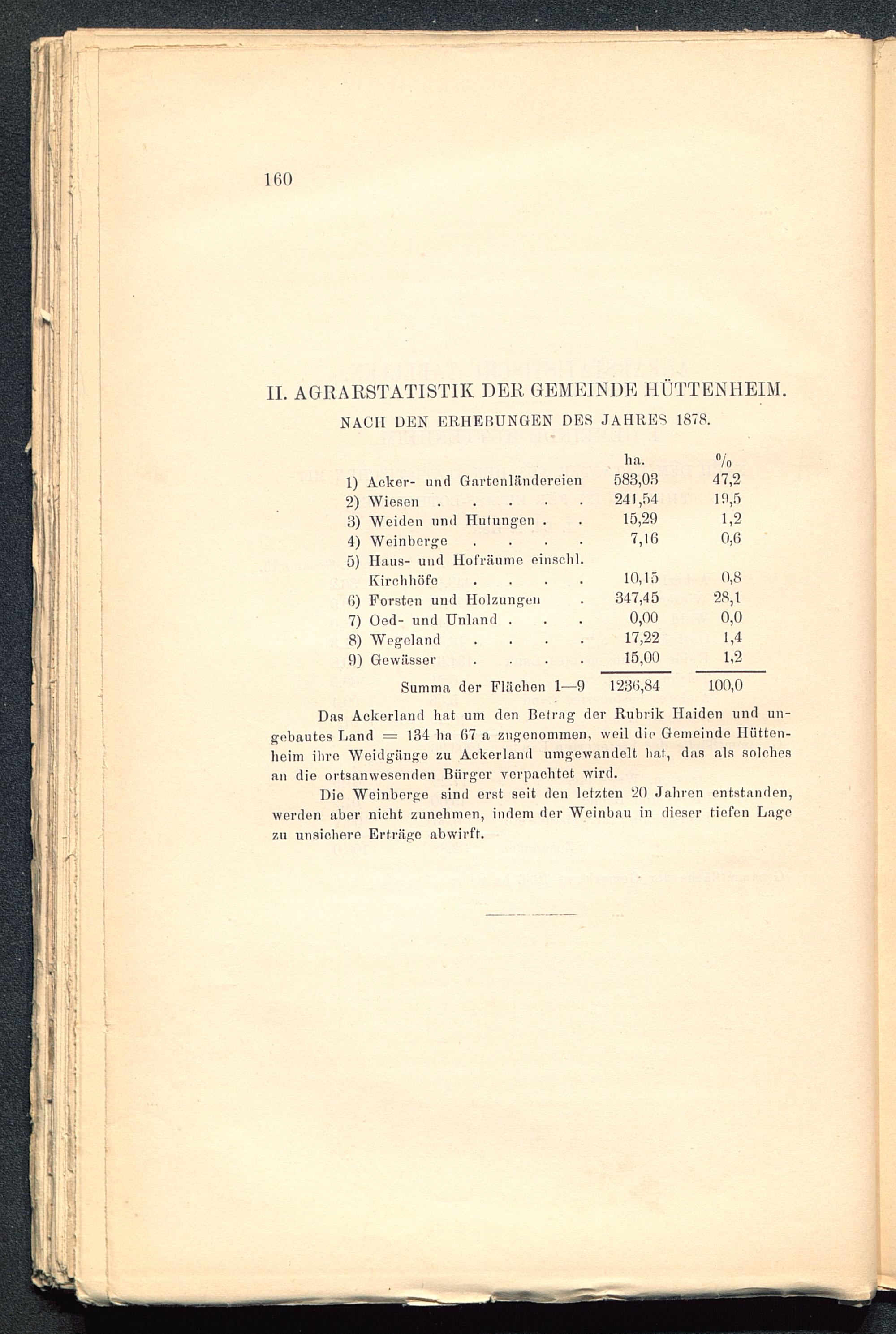 Das Ackerland hat um den Betrag der Rubrik Ilniden und un-gebautes Land = 134 ha 07 a zugenommen, weil die Gemeinde Hütten-heim ihre Woidgiingo zu Ackerland umgewandelt hat, das als solchesan die ortsanwesenden Bürger verpachtet wird.