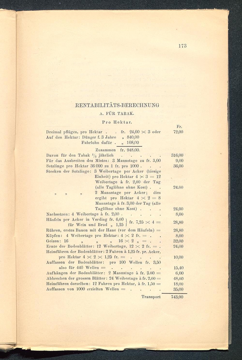 Für das Ausbreiten des Mistes: 3 Mannstage zu fr. 3,00Setzlinge pro Hektar 36 000 zu 1 fr. pro 1000 .