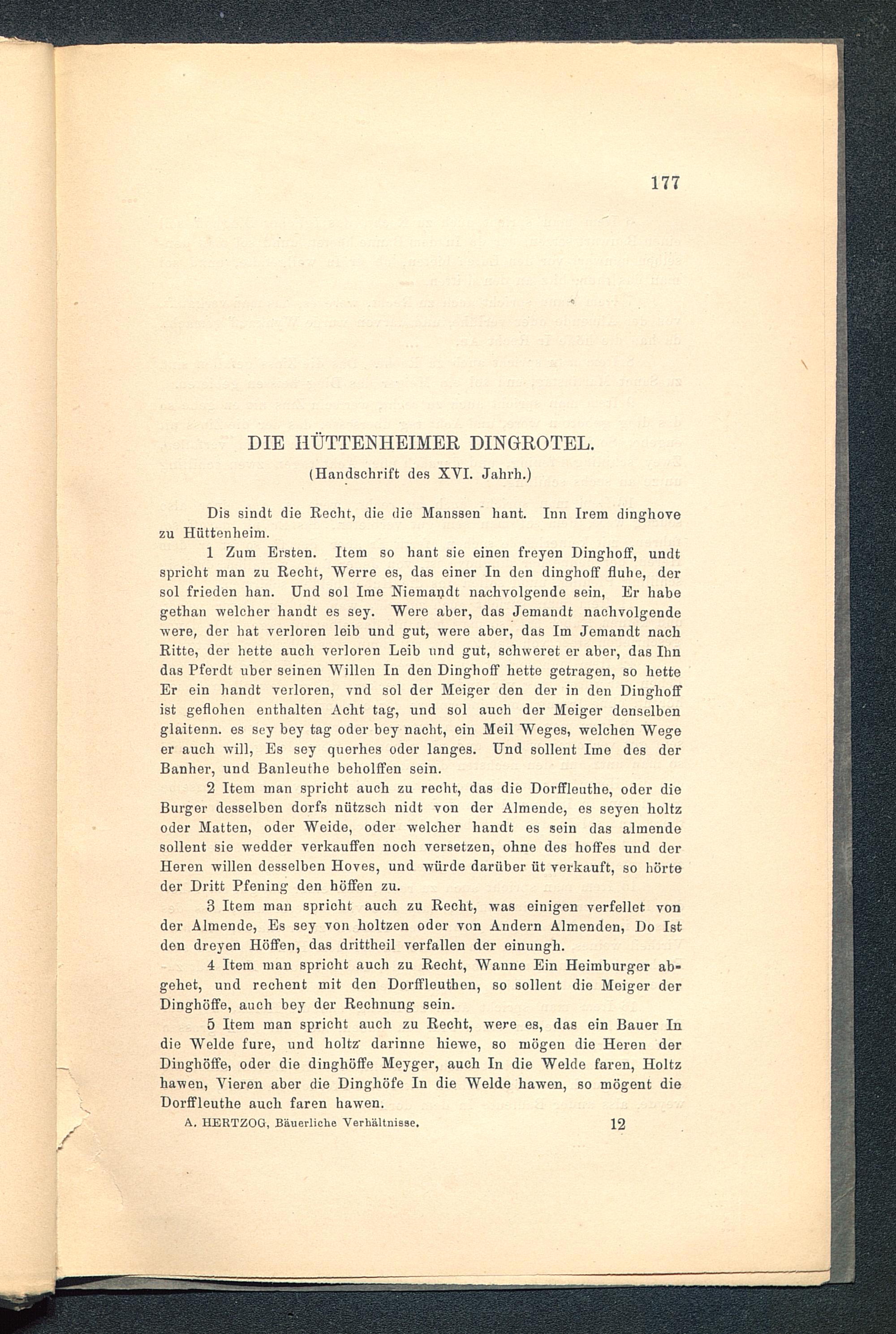 A. HERTZOG, Bäuerliche Verhältnisse,