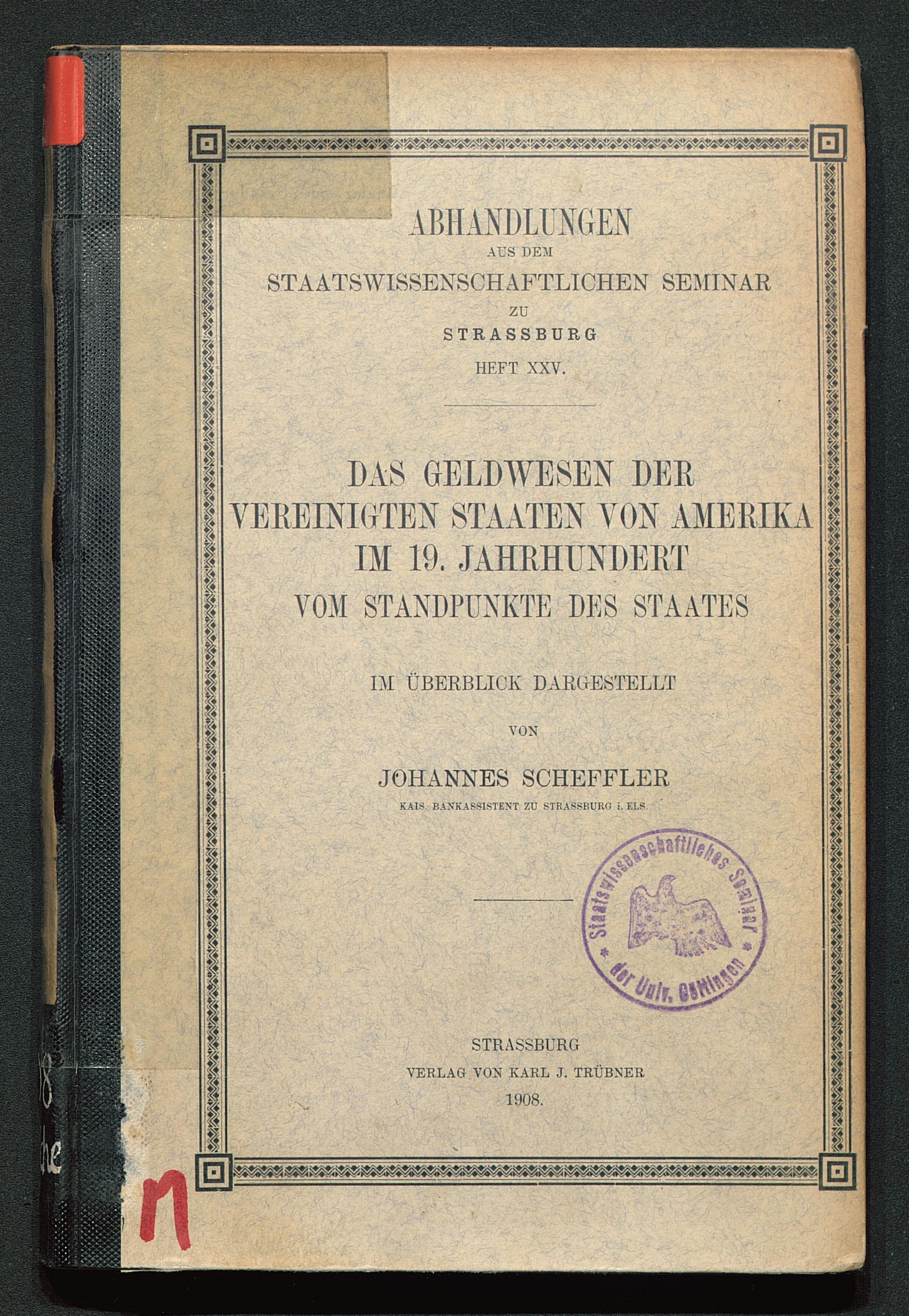 ABHANDLUNGENSTAATSWISSENSCHAFTLICHEN SEMINARHEFT XXV.DAS GELDWESEN DERVEREINIGTEN STAATEN VON AMERIKAIM 19. JAHRHUNDERTVOM STANDPUNKTE DES STAATESIM ÜBERBLICK DARBESTELLTJOHANNES SCHEFFLERKAIS. BANKASSISTENT ZU STRASSBURG i. ELS.STRASSBURGVERLAG VON KARL J. TRUBNER