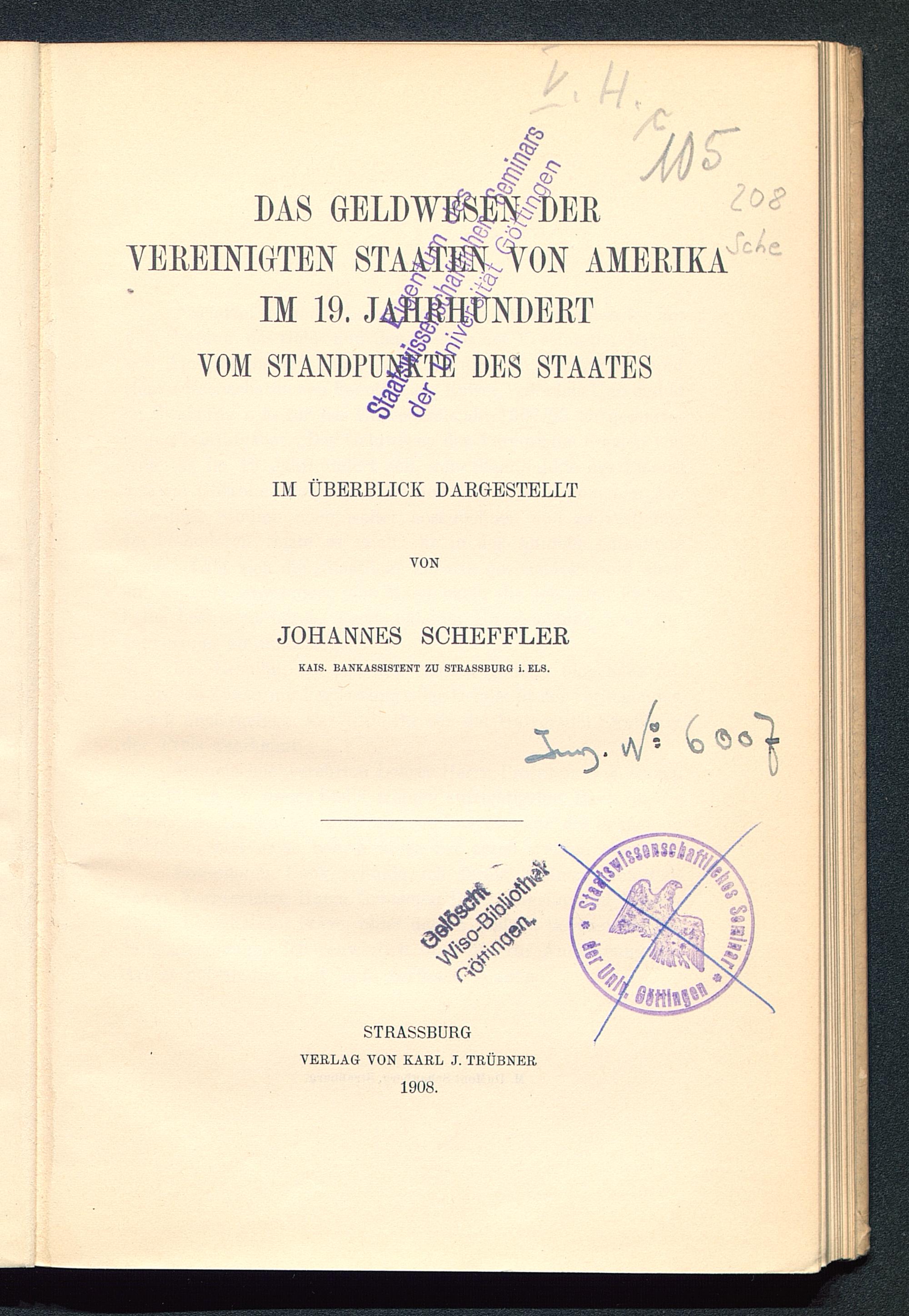 '/DAS GELDW^J§#EßVEßEINIGTEN STA|||§^ON AME R I K AIM 19 .IAäÄuNRERTVOM STANDPDüSTE DES STAATESIM ÜBERBLICK DARGESTELLTJOHANNES SCHEFFLERKAIS. BANKASSISTENT ZU STRASSBURG i. ELS.2 *-^-fJ.%■0 °&STRASSBURG VERLAG VON KARL J. TRÜBNER1908 .