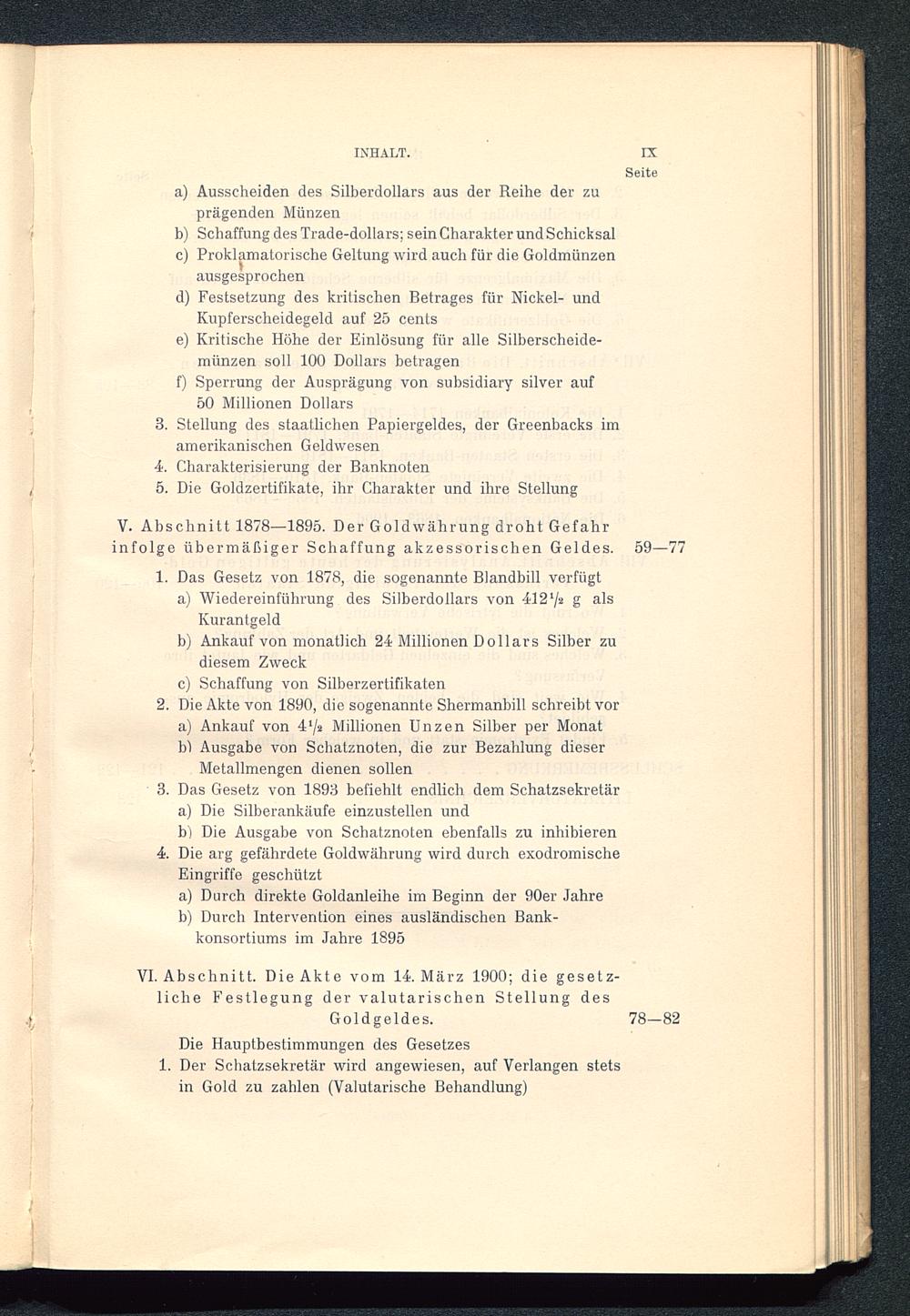 V. Abschnitt 1878—1895. Der Goldwährung droht Gefahrinfolge übermäßiger Schaffung akzessorischen Geldes. 59—77
