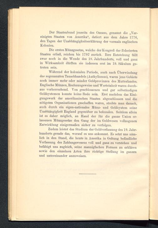 Die ersten Münzgesetze, -welche der Kongreß der föderiertenStaaten erließ, reichen bis 1792 zurück. Ihre Entstehung fälltzwar noch in die Wende des 18. Jahrhunderts, voll und ganzin Wirksamkeit dürften sie indessen erst im 19. Säkulum ge-treten sein.