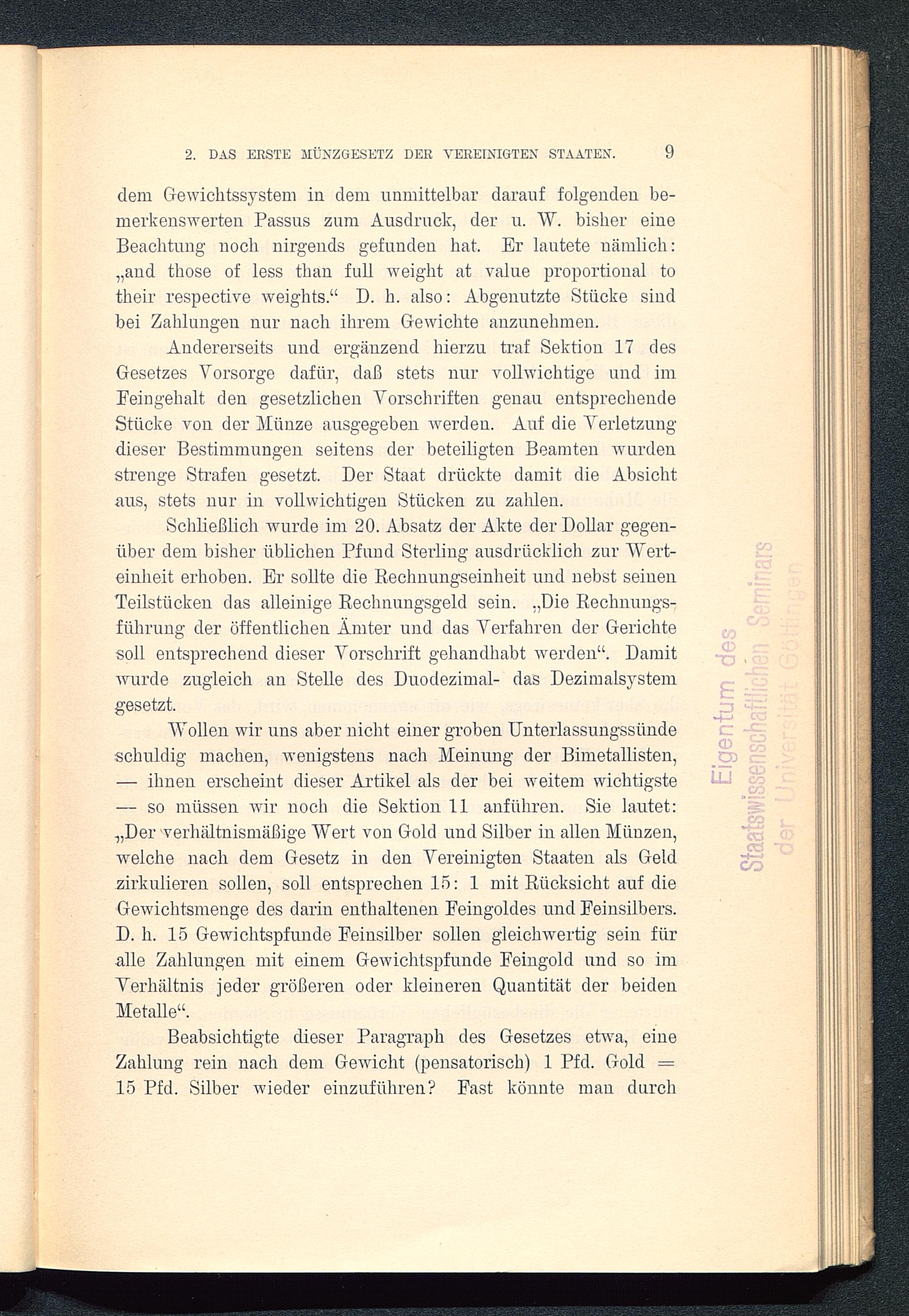 2. DAS ERSTE JIÜNZGESETZ DER VEREINIGTEN STAATEN. 9