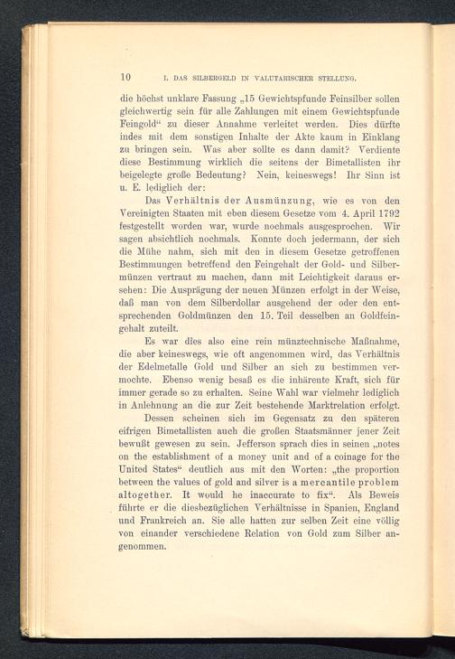 10 I. DAS SILBERGELD IN VALUTARISCHER STELLUNG.