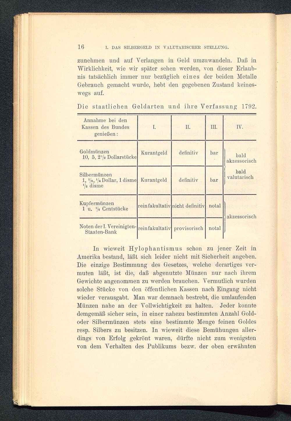 I. DAS SILBERGELD IN VALETARISCHER STELLUNG.