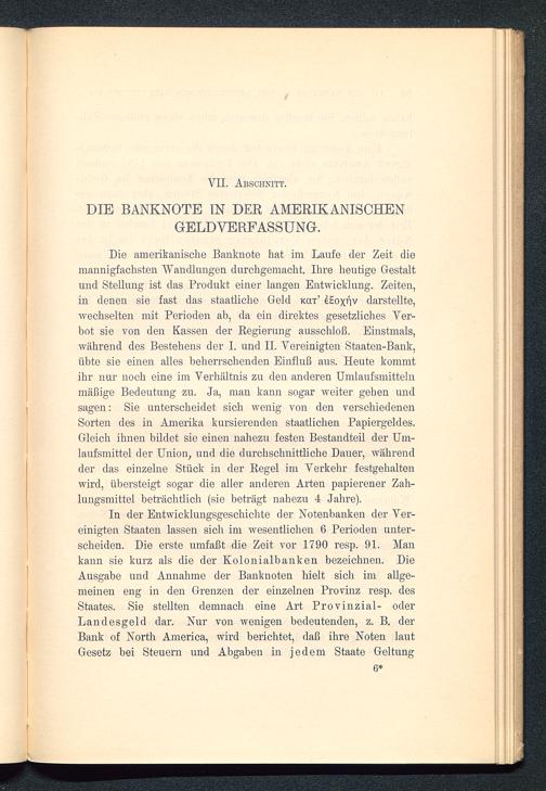 Die amerikanische Banknote hat im Laufe der Zeit diemannigfachsten Wandlungen durchgemacht. Ihre heutige Gestaltund Stellung ist das Produkt einer langen Entwicklung. Zeiten,in denen sie fast das staatliche Geld Kai’ e£oxnv darstellte,wechselten mit Perioden ab, da ein direktes gesetzliches Ver-bot sie von den Kassen der Regierung ausschloß. Einstmals,während des Bestehens der I. und II. Vereinigten Staaten-Bank,übte sie einen alles beherrschenden Einfluß aus. Heute kommtihr nur noch eine im Verhältnis zu den anderen Umlaufsmittelnmäßige Bedeutung zu. Ja, man kann sogar weiter gehen undsagen: Sie unterscheidet sich wenig von den verschiedenen
