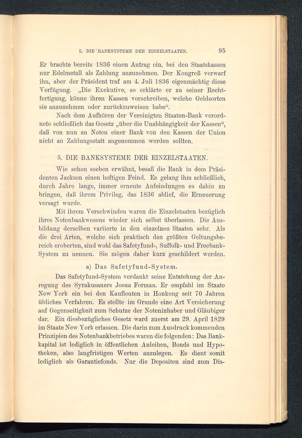 5. DIE BANKSYSTEME DER EINZELSTAATEN.