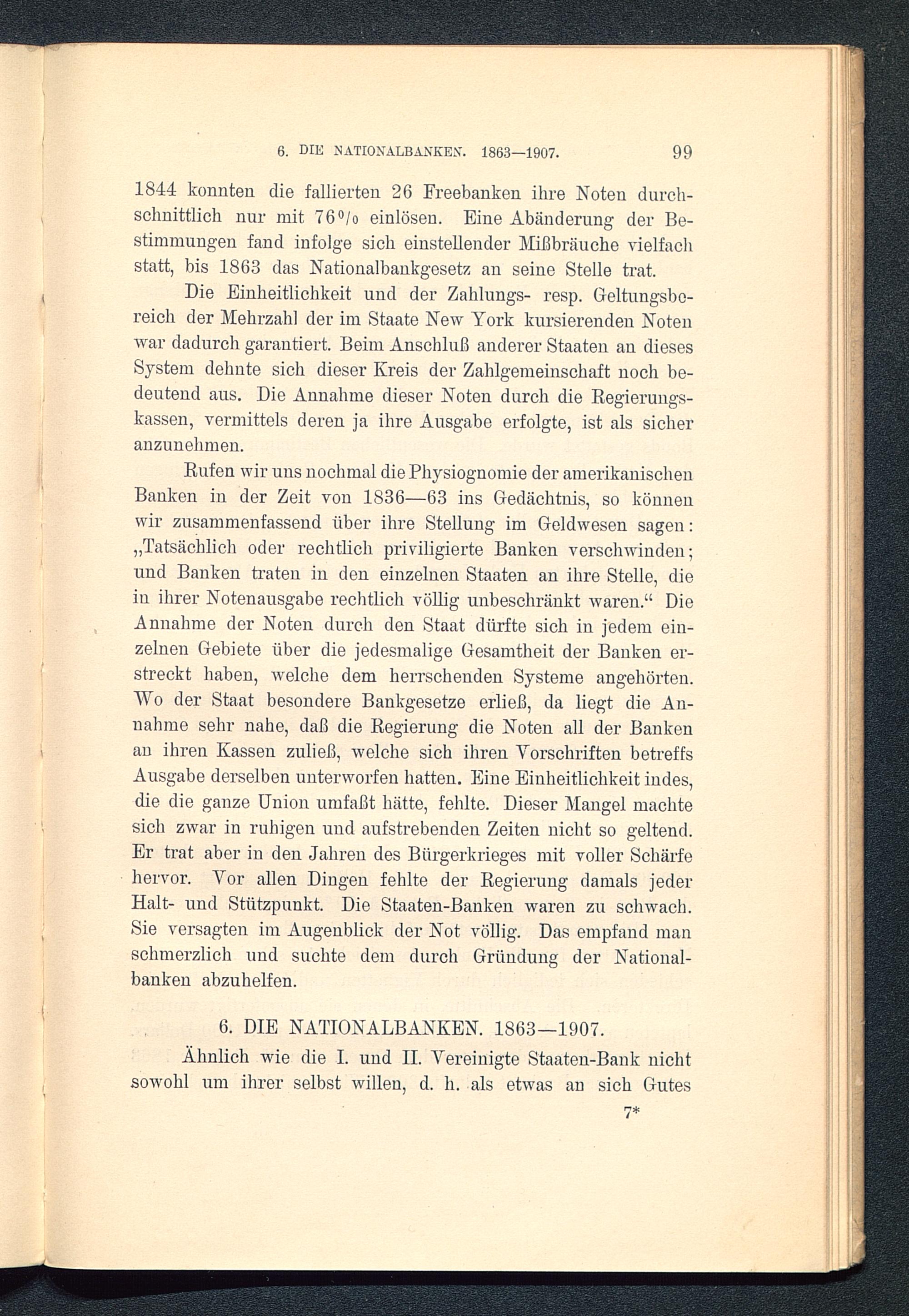 1844 konnten die fallierten 26 Freebanken ihre Noten durch-schnittlich nur mit 76°/o einlösen. Eine Abänderung der Be-stimmungen fand infolge sich einstellender Mißbräuche vielfachstatt, bis 1863 das Nationalbankgesetz: an seine Stelle trat.