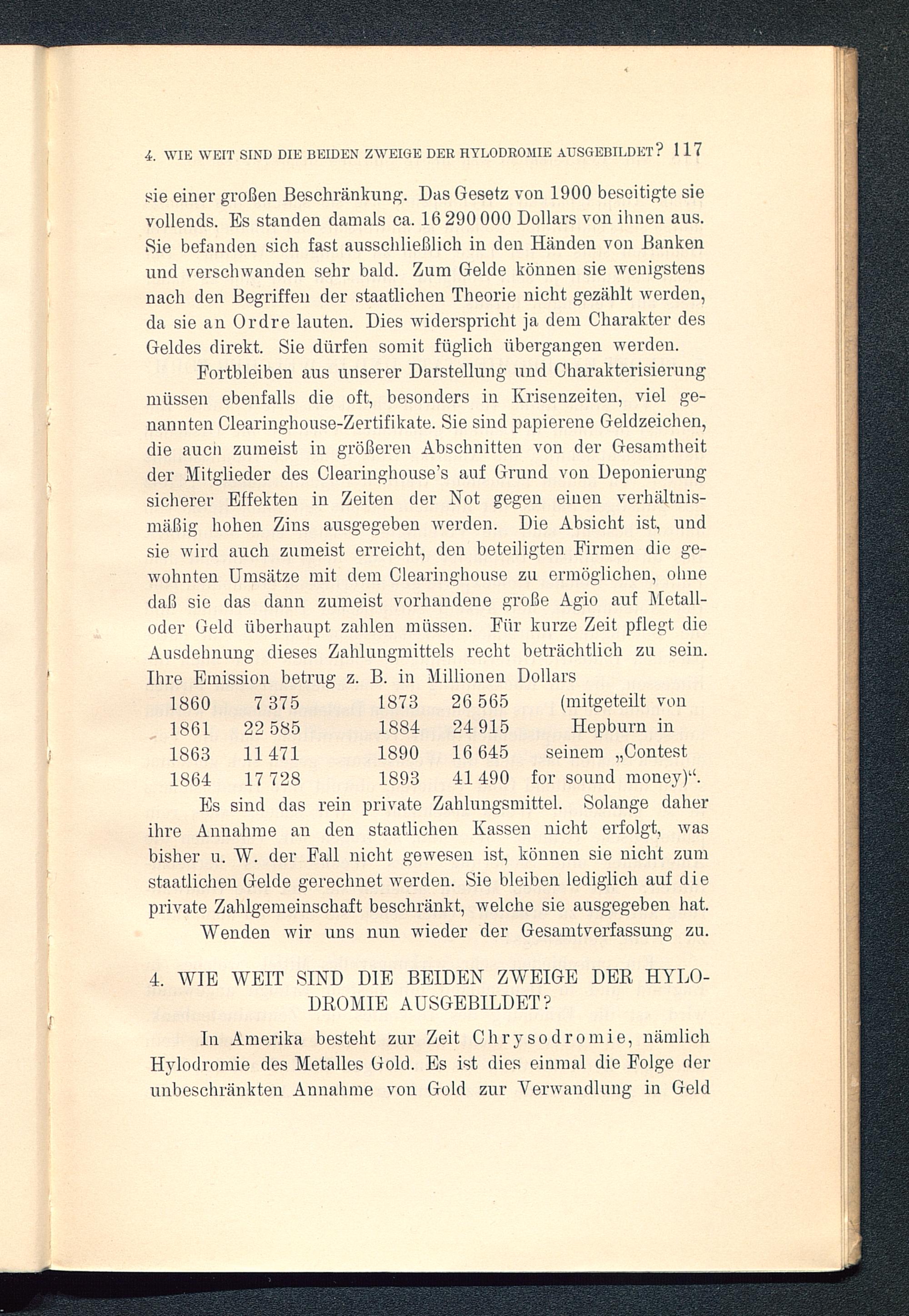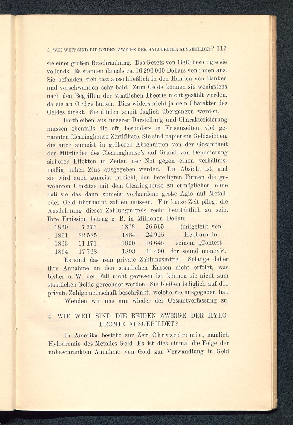 sie einer großen Beschränkung. Das Gesetz von 1900 beseitigte sievollends. Es standen damals ca. 16 290 000 Dollars von ihnen aus.Sie befanden sich fast ausschließlich in den Händen von Bankenund verschwanden sehr bald. Zum Gelde können sie wenigstensnach den Begriffen der staatlichen Theorie nicht gezählt werden,da sie an Ordre lauten. Dies widerspricht ja dem Charakter desGeldes direkt. Sie dürfen somit füglich übergangen werden.