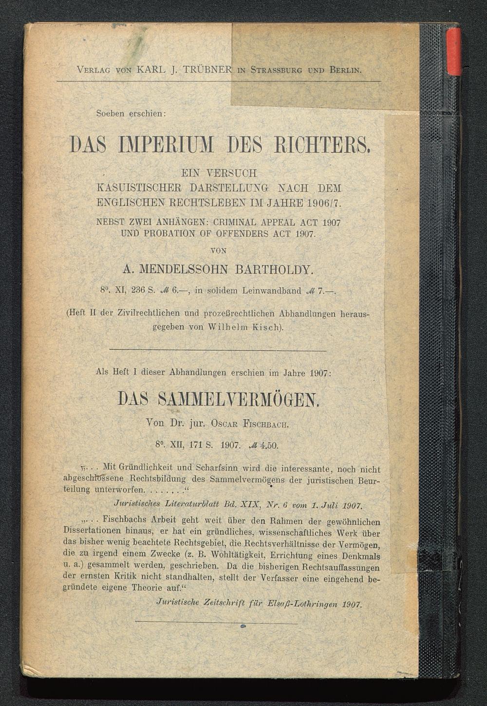 KASUISTISCHER DARSTELLUNG NACH . DEMENGLISCHEN RECHTSLEBEN IM JAHRE 1906/7.