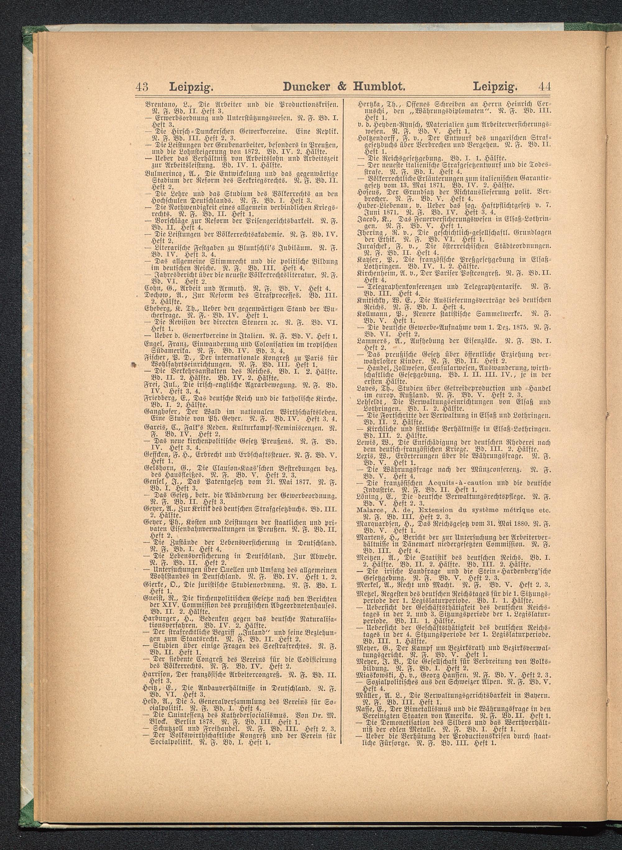 Untersuchungen über Quellen und Umfang des allgemeinenWohlstandes in Deutschland. N. F. Bd. IV. Heft 1. 2.Gierke, D., Die juristische Studienordnung. N. F. Bd. I.Heft 1.