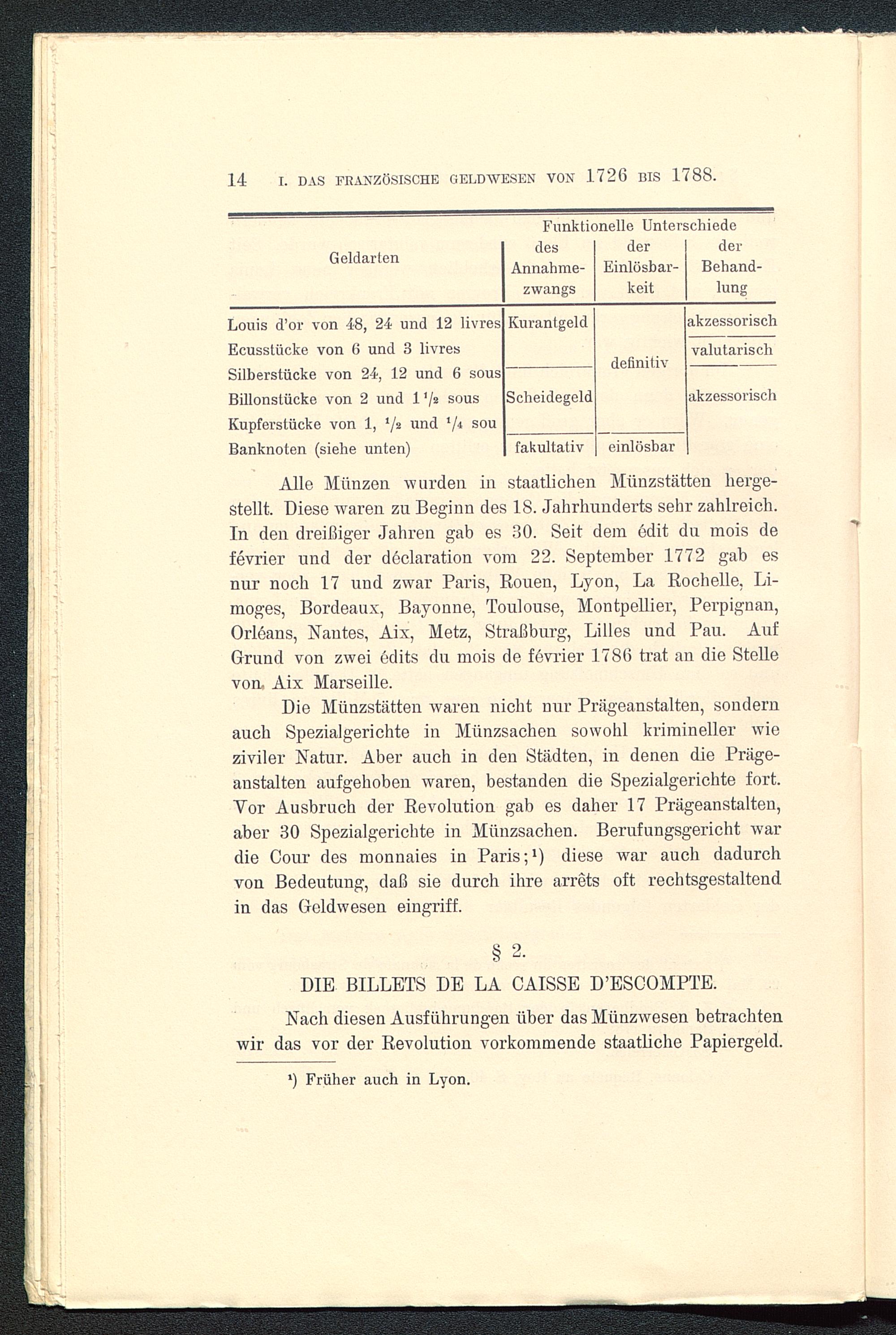 14 I. DAS FRANZÖSISCHE GELDWESEN VON 1726 BIS 1788 .