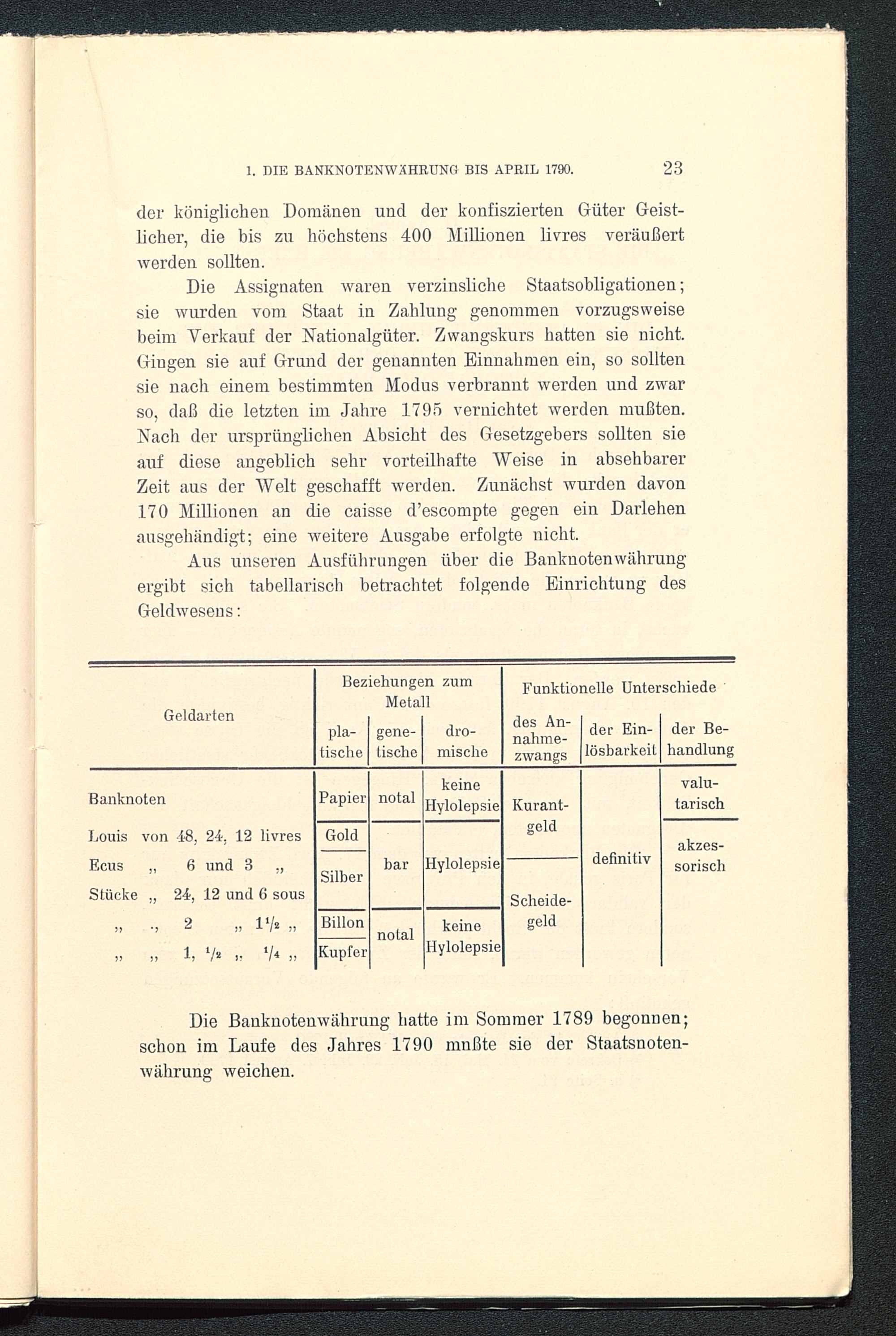 Die Banknoteuwährung hatte im Sommer 1789 begonnen;schon im Laufe des Jahres 1790 mußte sie der Staatsnoten-währung weichen.