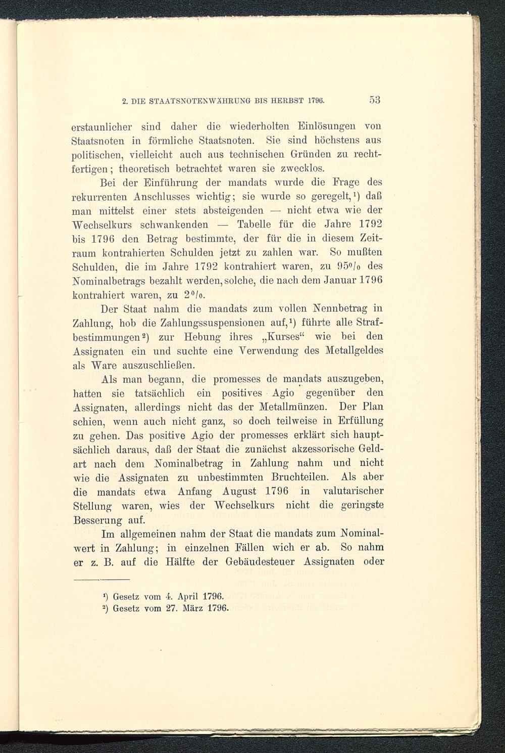 2. DIE STAATSNOTEN WÄHRUNG BIS HERBST 1796. 53