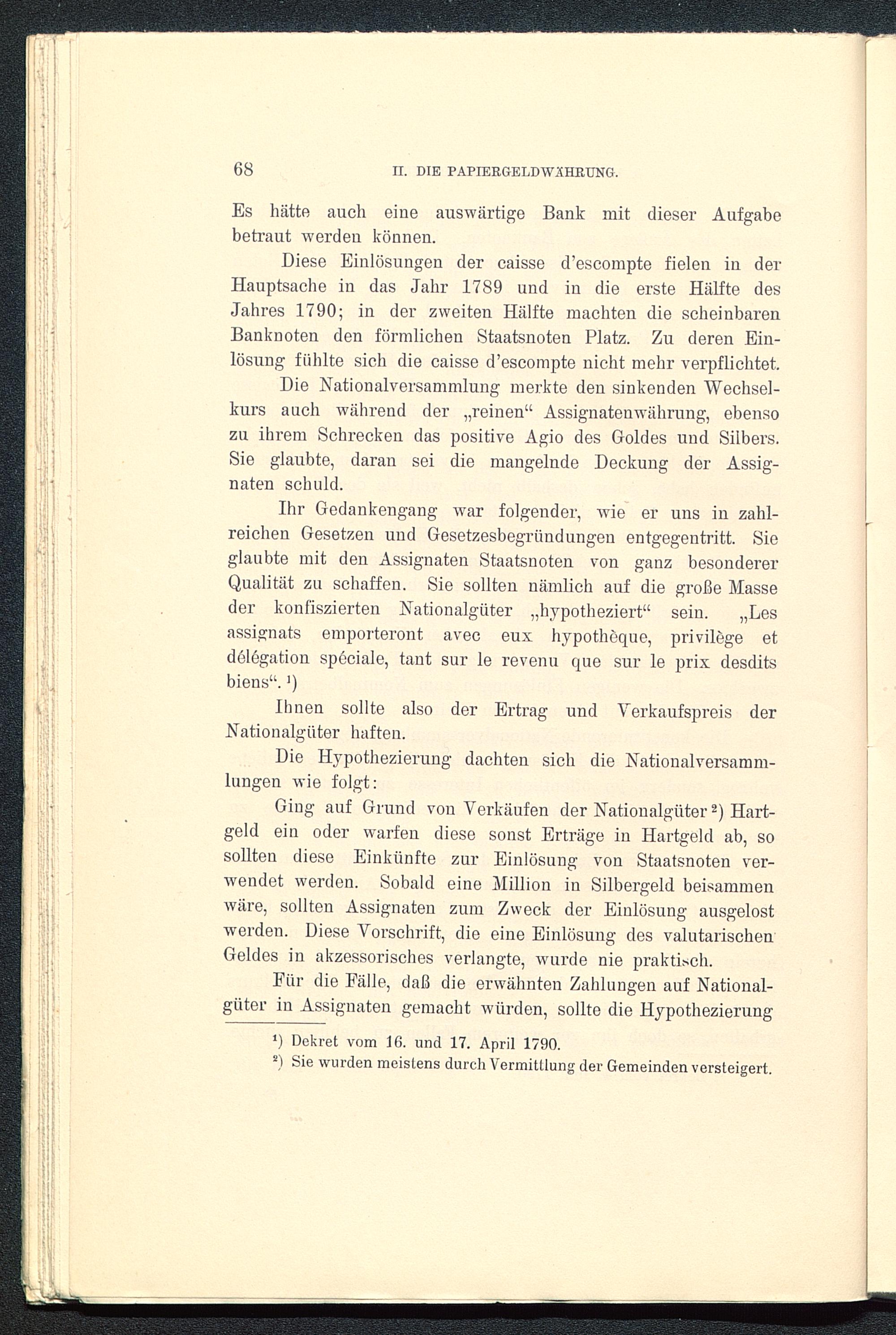 Ihr Gedankengang war folgender, wie er uns in zahl-reichen Gesetzen und Gesetzesbegründungen entgegentritt. Sieglaubte mit den Assignaten Staatsnoten von ganz besondererQualität zu schaffen. Sie sollten nämlich auf die große Masseder konfiszierten Nationalgüter „hypotheziert“ sein. „Desassignats emporteront avec eux hypotheque, privilege etdelegation spöciale, tant sur le revenu que sur le prix desditsbiens“. ■)