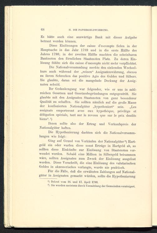 Ging auf Grund von Verkäufen der Nationalgüter 2 ) Hart-geld ein oder warfen diese sonst Erträge in Hartgeld ab, sosollten diese Einkünfte zur Einlösung von Staatsnoten ver-wendet werden. Sobald eine Million in Silbergeld beisammenwäre, sollten Assignaten zum Zweck der Einlösung ausgelostwerden. Diese Vorschrift, die eine Einlösung des valutarischenGeldes in akzessorisches verlangte, wurde nie praktisch.