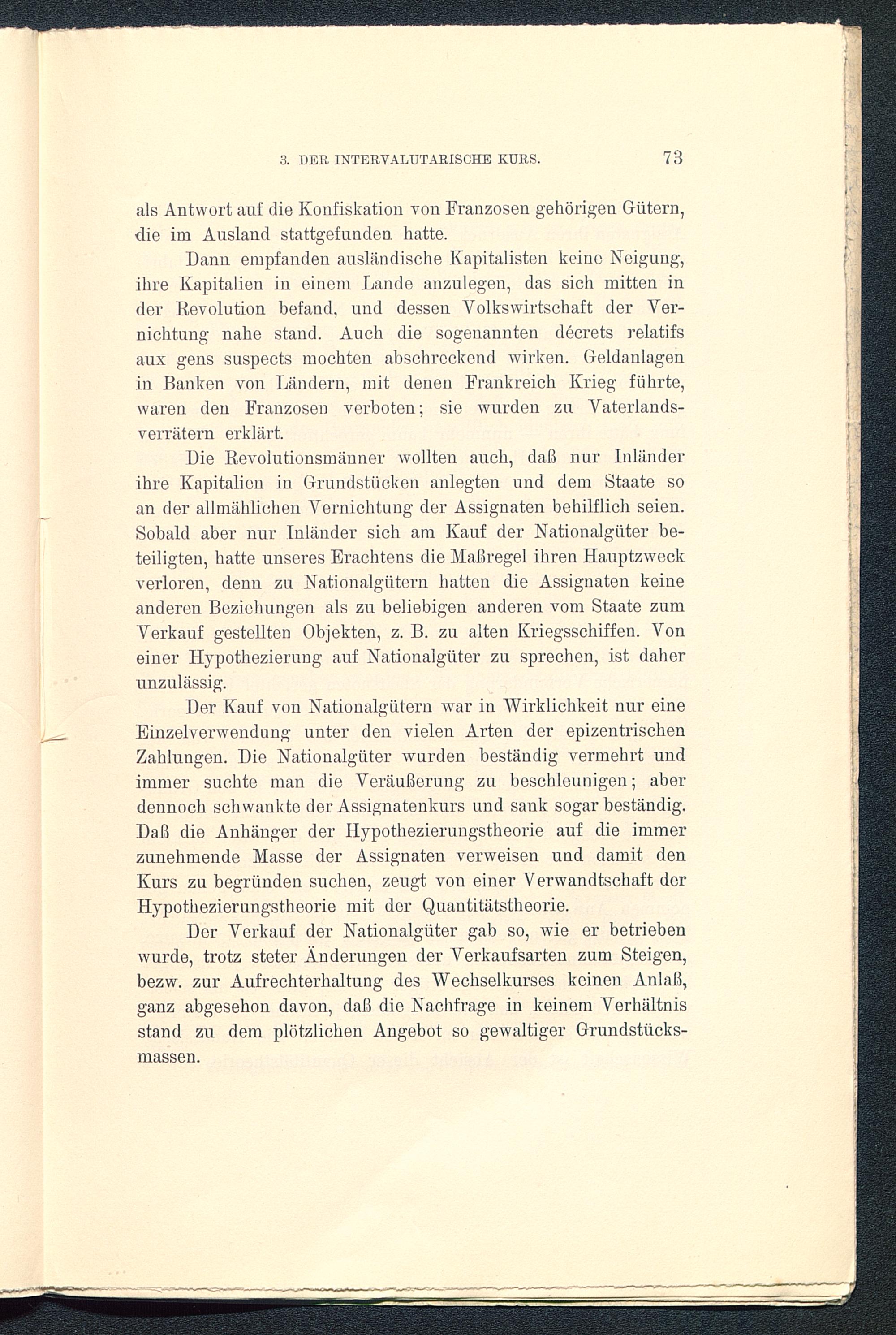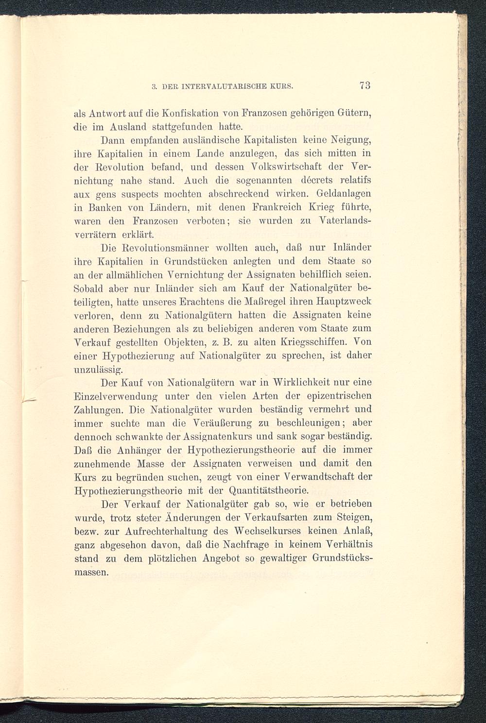 Der Kauf von Nationalgütern war in AVirklichkeit nur eineEinzelverwendung unter den vielen Arten der epizentrischenZahlungen. Die Nationalgüter wurden beständig vermehrt undimmer suchte man die Veräußerung zu beschleunigen; aberdennoch schwankte der Assignatenkurs und sank sogar beständig.Daß die Anhänger der Hypothezierungstheorie auf die immerzunehmende Masse der Assignaten verweisen und damit denKurs zu begründen suchen, zeugt von einer Verwandtschaft derHypothezierungstheorie mit der Quantitätstheorie.