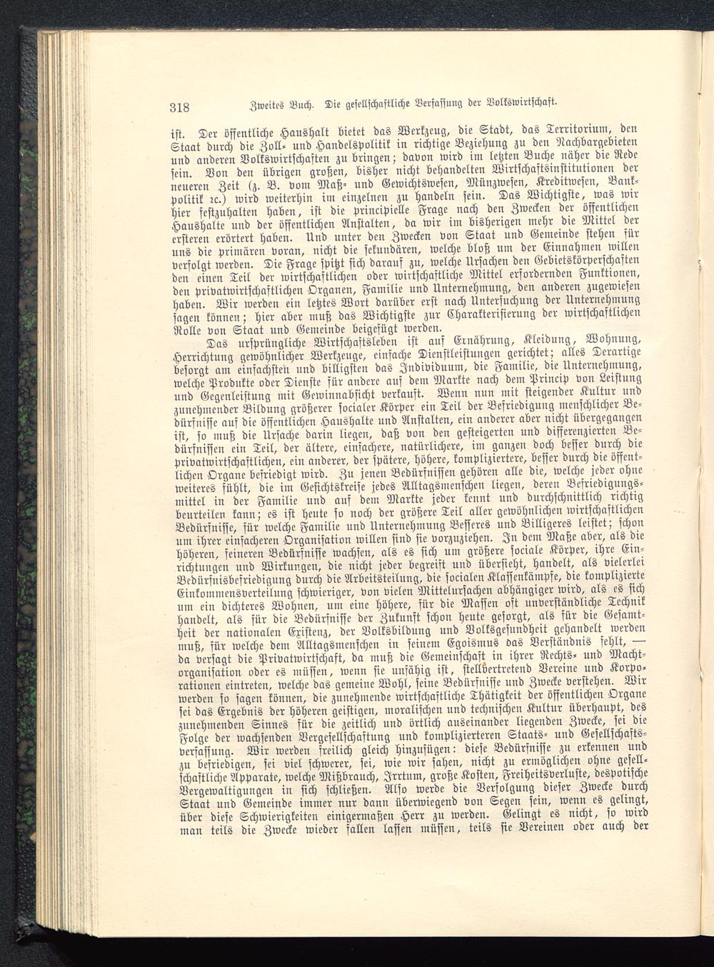 ist. Der öffentliche Haushalt bietet das Werkzeug, die Stadt, das Territorium, denStaat durch die Zoll- und Handelspolitik in richtige Beziehung zu den Nachbargebietenund anderen Volkswirtschaften zu bringen; davon wird im letzten Buche näher die Redesein. Von den übrigen großen, bisher nicht behandelten Wirtschaftsinstitutionen derneueren Zeit (z. B. vom Maß- und Gewichtswescn, Münzwesen, Kreditwesen, Bank-politik :c.) wird weiterhin im einzelnen zu handeln sein. Das Wichtigste, was wirhier festzuhalten haben, ist die principielle Frage nach den Zwecken der öffentlichenHaushalte und der öffentlichen Anstalten, da wir im bisherigen mehr die Mittel derersteren erörtert haben. Und unter den Zwecken von Staat und Gemeinde stehen fürunS die primären voran, nicht die sekundären, welche bloß um der Einnahmen willenverfolgt werden. Die Frage spitzt sich darauf zu, welche Ursachen den Gebietskörperschaftenden einen Teil der wirtschaftlichen oder wirtschaftliche Mittel erfordernden Funktionen,den privatwirtschaftlichen Organen, Familie und Unternehmung, den anderen zugewiesenhaben. Wir werden ein letztes Wort darüber erst nach Untersuchung der Unternehmungsagen können; hier aber muß das Wichtigste zur Charakterisierung der wirtschaftlichenRolle von Staat und Gemeinde beigefügt werden.