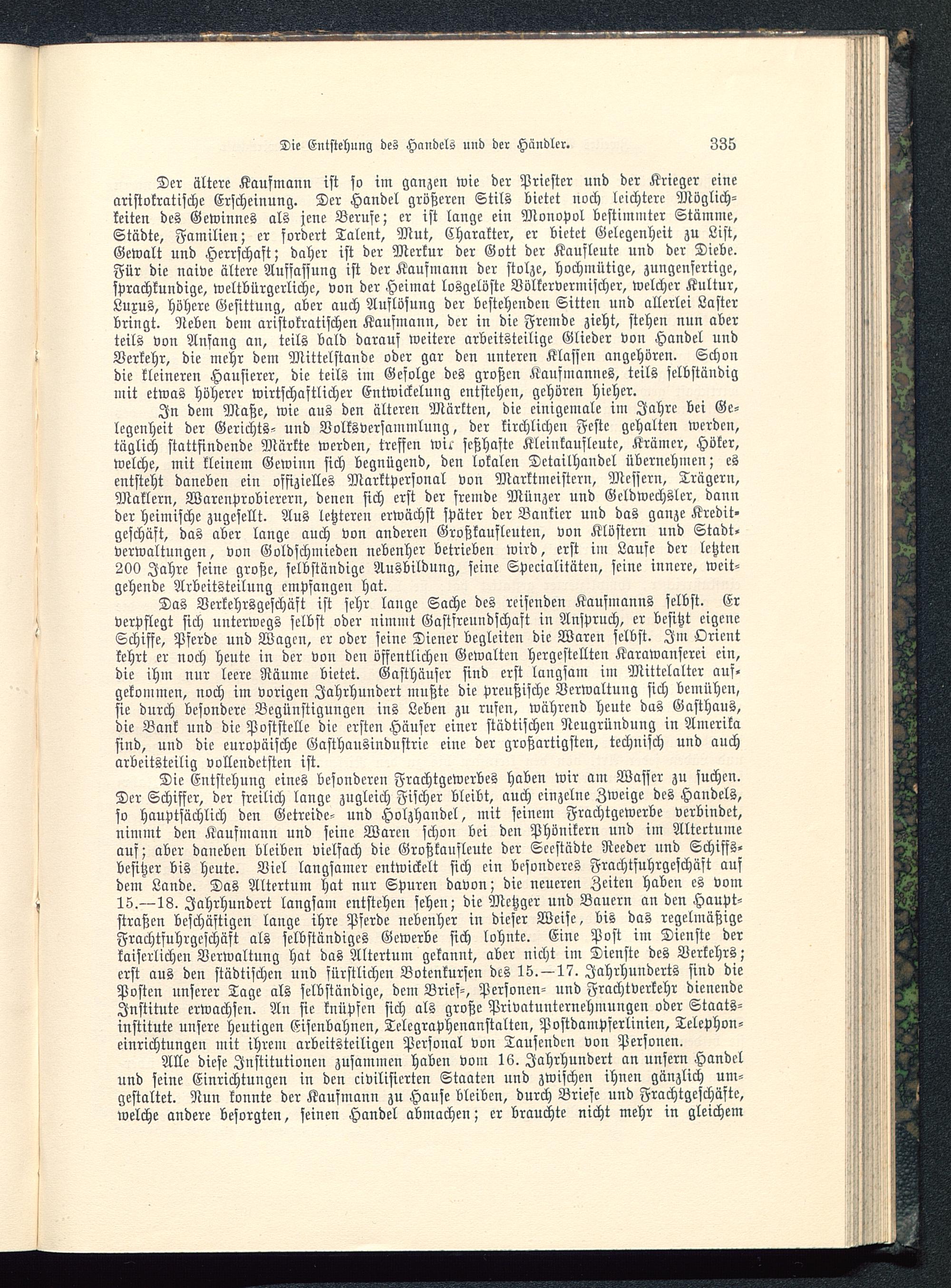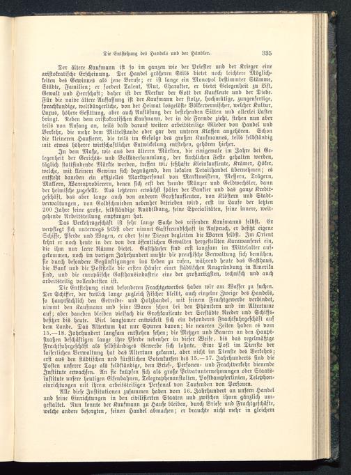 Alle diese Institutionen zusammen haben vom 16. Jahrhundert an unsern Handelund seine Einrichtungen in den civilisierten Staaten und zwischen ihnen gänzlich um-gestaltet. Nun konnte der Kaufmann zu Hause bleiben, durch Briefe und Frachtgeschäfte,welche andere besorgten, seinen Handel abmachen; er brauchte nicht mehr in gleichem