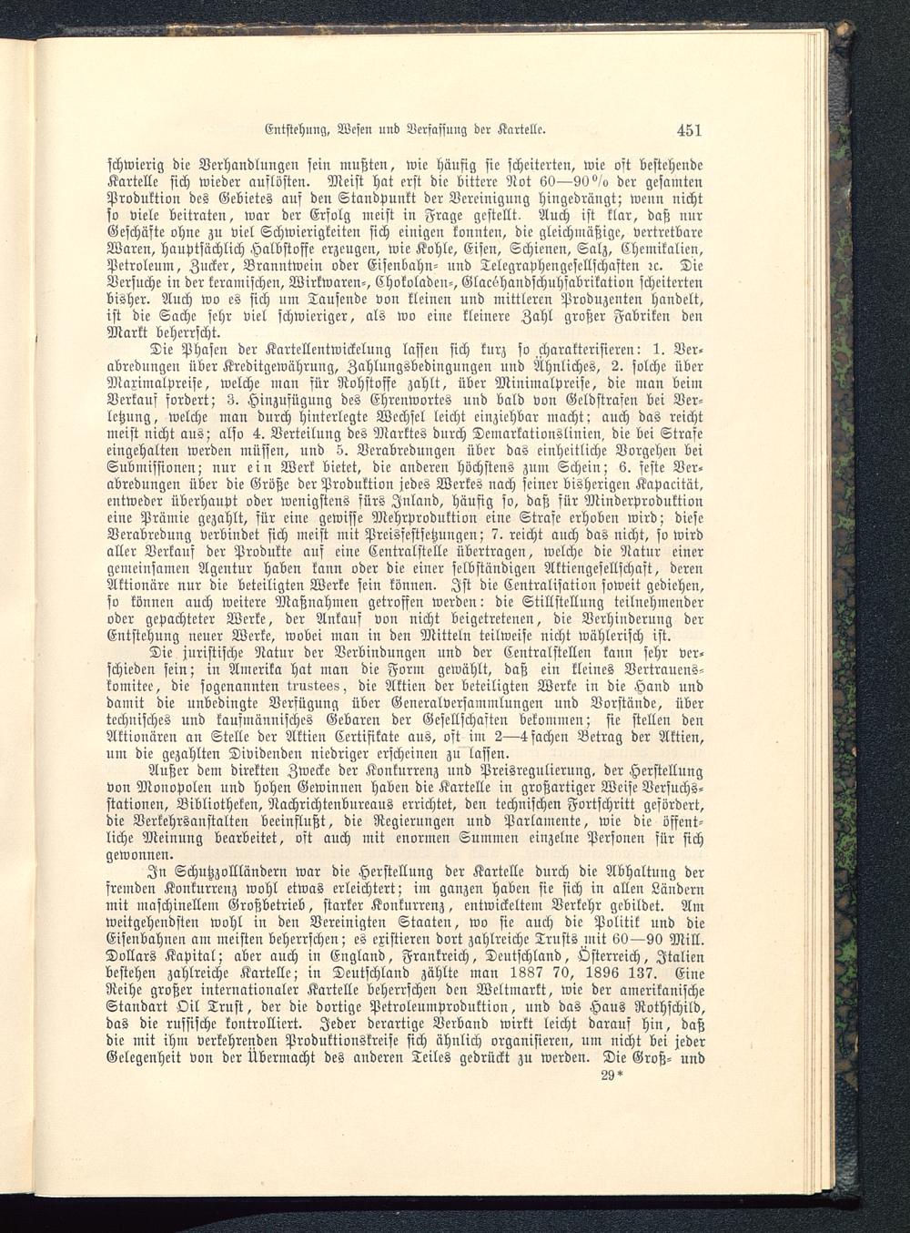 In Schutzzollländern war die Herstellung der Kartelle durch die Abhaltung derfremden Konkurrenz wohl etwas erleichtert; im ganzen haben sie sich in allen Ländernmit maschinellem Großbetrieb, starker Konkurrenz, entwickeltem Verkehr gebildet. Amweitgehendsten Wohl in den Vereinigten Staaten , wo sie auch die Politik und dieEisenbahnen am meisten beherrschen; es existieren dort zahlreiche Trusts mit 60—90 Mill.Dollars Kapital; aber auch in England, Frankreich, Deutschland, Osterreich, Italien bestehen zahlreiche Kartelle; in Deutschland zählte man 1887 70, 1896 137. EineReihe großer internationaler Kartelle beherrschen den Weltmarkt, wie der amerikanische Standart Oil Trust, der die dortige Petroleumproduktion, und das Haus Rothschild,das die russische kontrolliert. Jeder derartige Verband wirkt leicht darauf hin, daßdie mit ihm verkehrenden Produktionskreise sich ähnlich organisieren, um nicht bei jederGelegenheit von der Übermacht des anderen Teiles gedrückt zu werden. Die Groß- und