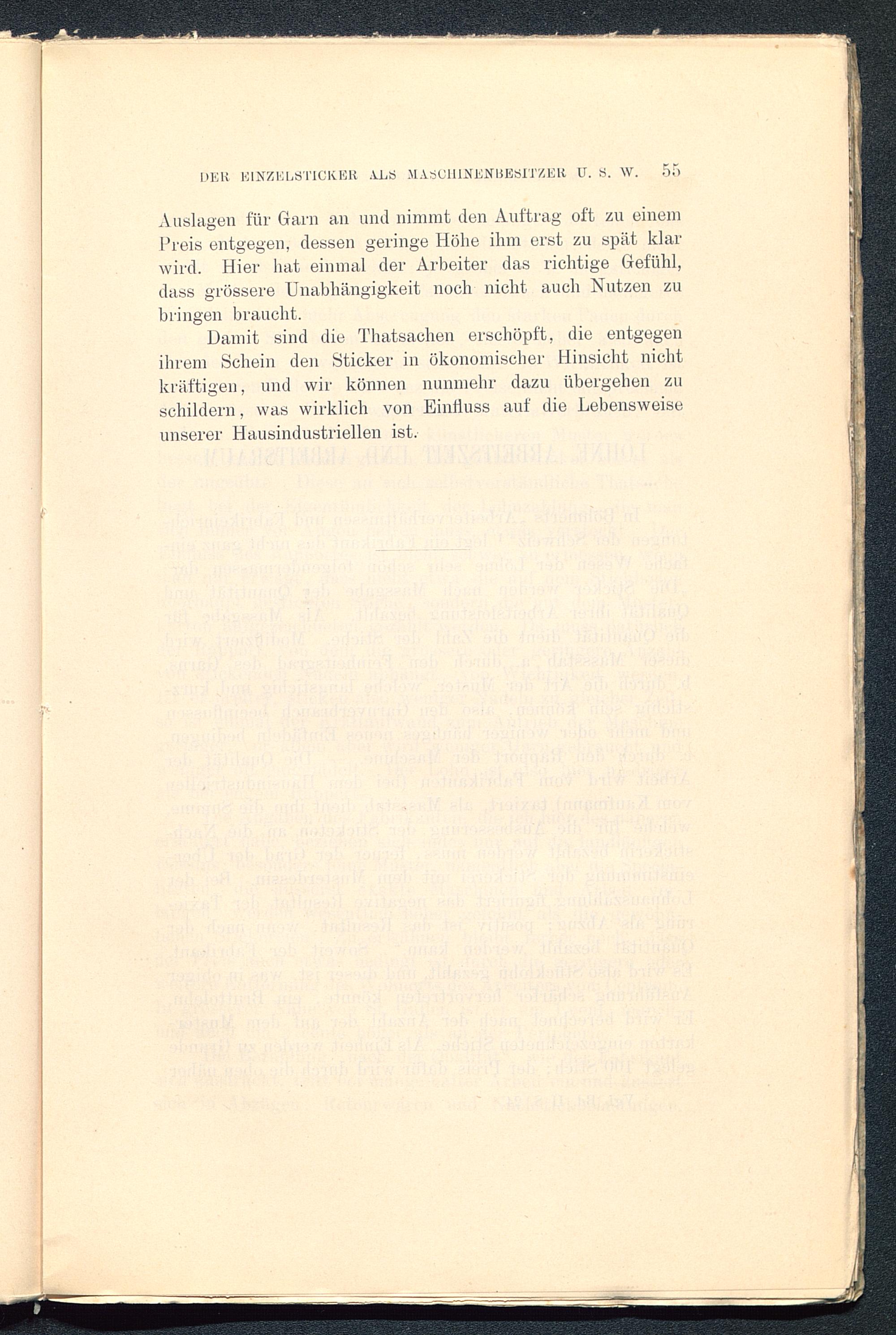 Damit sind die Thatsachen erschöpft, die entgegenihrem Schein den Sticker in ökonomischer Hinsicht nichtkräftigen, und wir können nunmehr dazu übergehen zuschildern, was wirklich von Einfluss auf die Lebensweiseunserer Hausindustriellen ist.