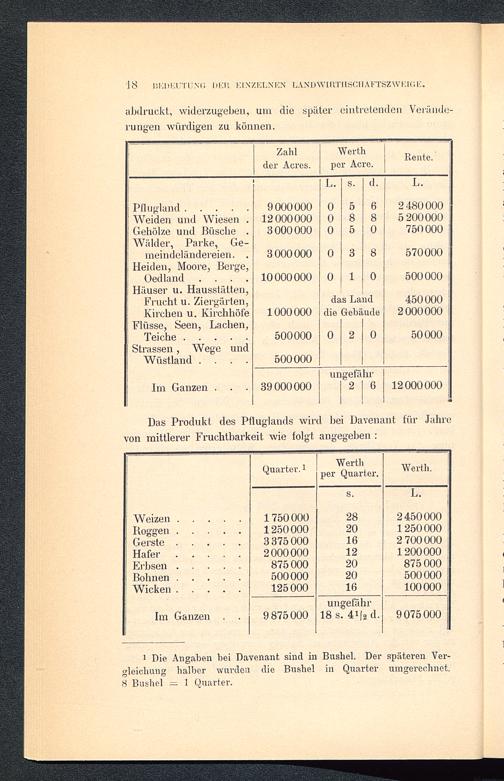 i Die Angaben bei Davenant sind in Busliel. Der späteren Ver-leicliung halber wurden die Bushel in Quarter umgerechnet.Bushel = 1 Quarter.