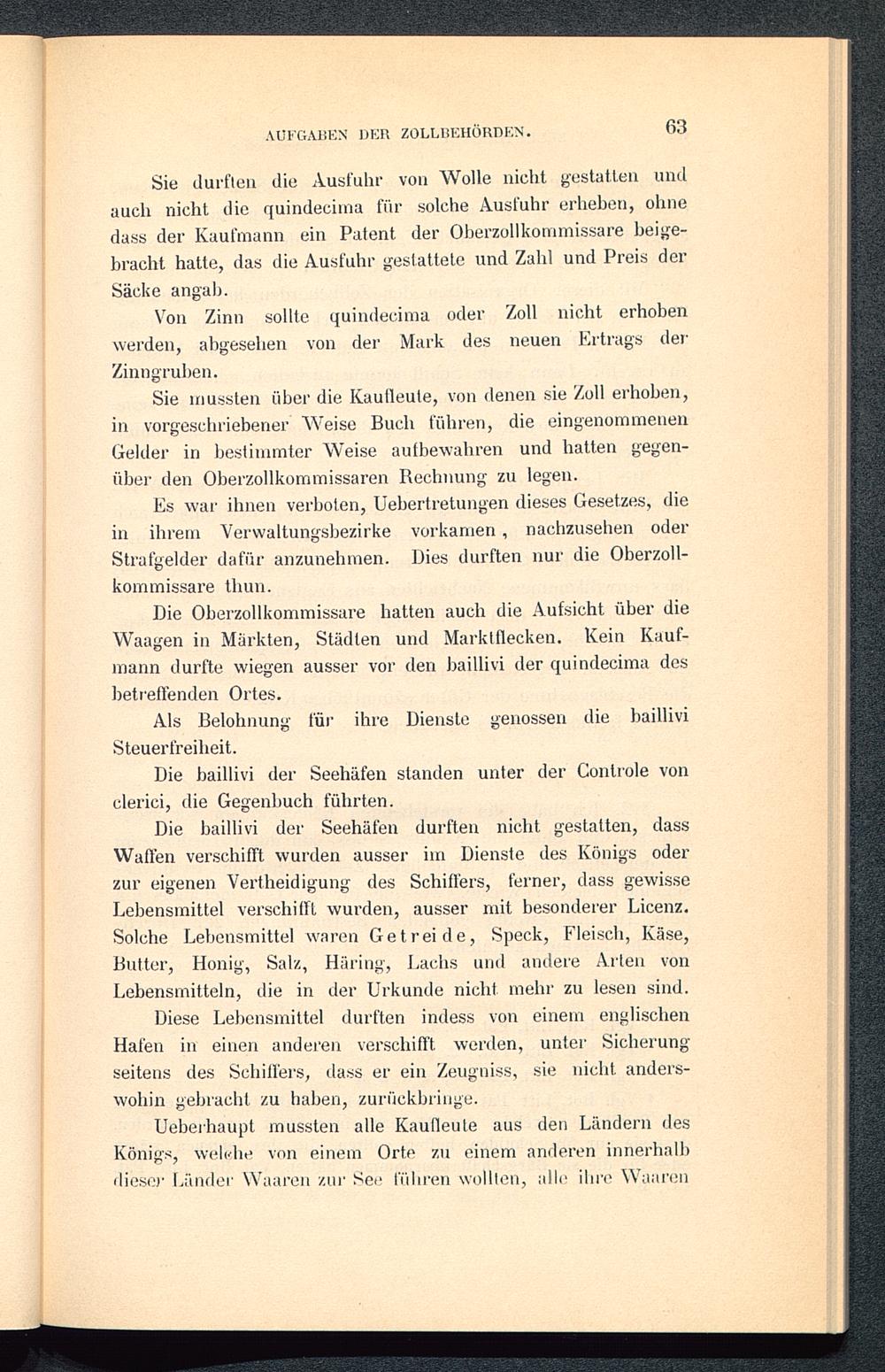 Die Oberzollkommissare hatten auch die Aufsicht über dieWaagen in Märkten, Städten und Marktflecken. Kein Kauf-mann durfte wiegen ausser vor den baillivi der quindecima desbetreffenden Ortes.