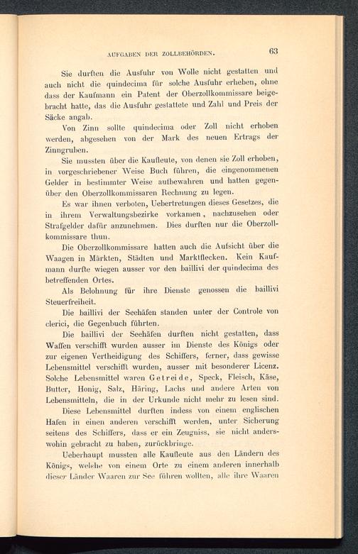 Sie durften die Ausfuhr von Wolle nicht gestatten undauch nicht die quindecima für solche Ausfuhr erheben, ohnedass der Kaufmann ein Patent der Oberzollkommissare beige-bracht hatte, das die Ausfuhr gestattete und Zahl und Preis derSäcke angab.