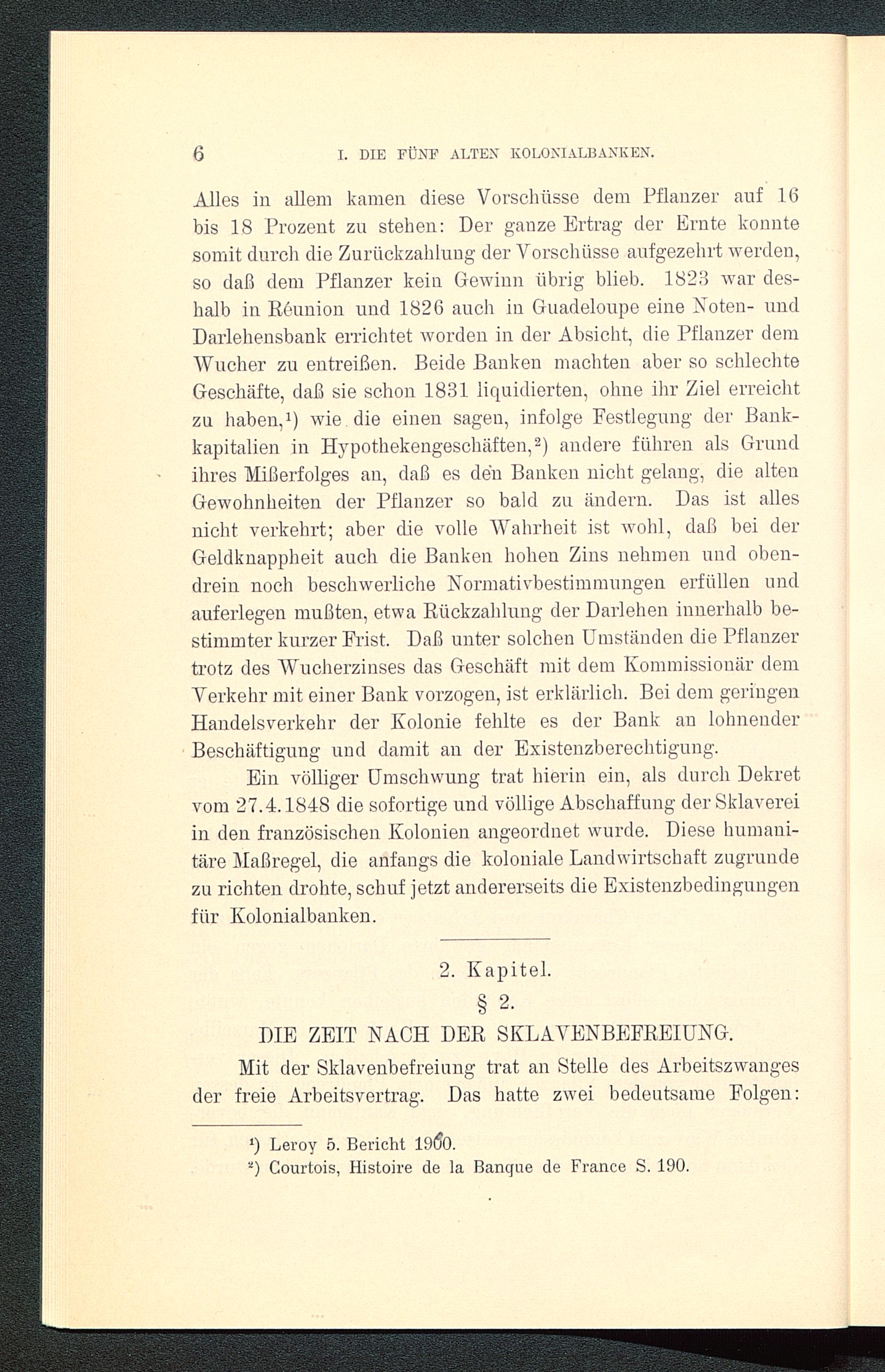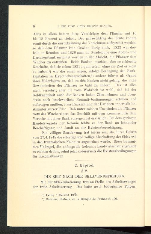 Ein völliger Umschwung trat hierin ein, als durch Dekretvom 27.4.184S die sofortige und völlige Abschaffung der Sklavereiin den französischen Kolonien angeordnet wurde. Diese humani-täre Maßregel, die anfangs die koloniale Landwirtschaft zugrundezu richten drohte, schuf jetzt andererseits die Existenzbedingungenfür Kolonialbanken.