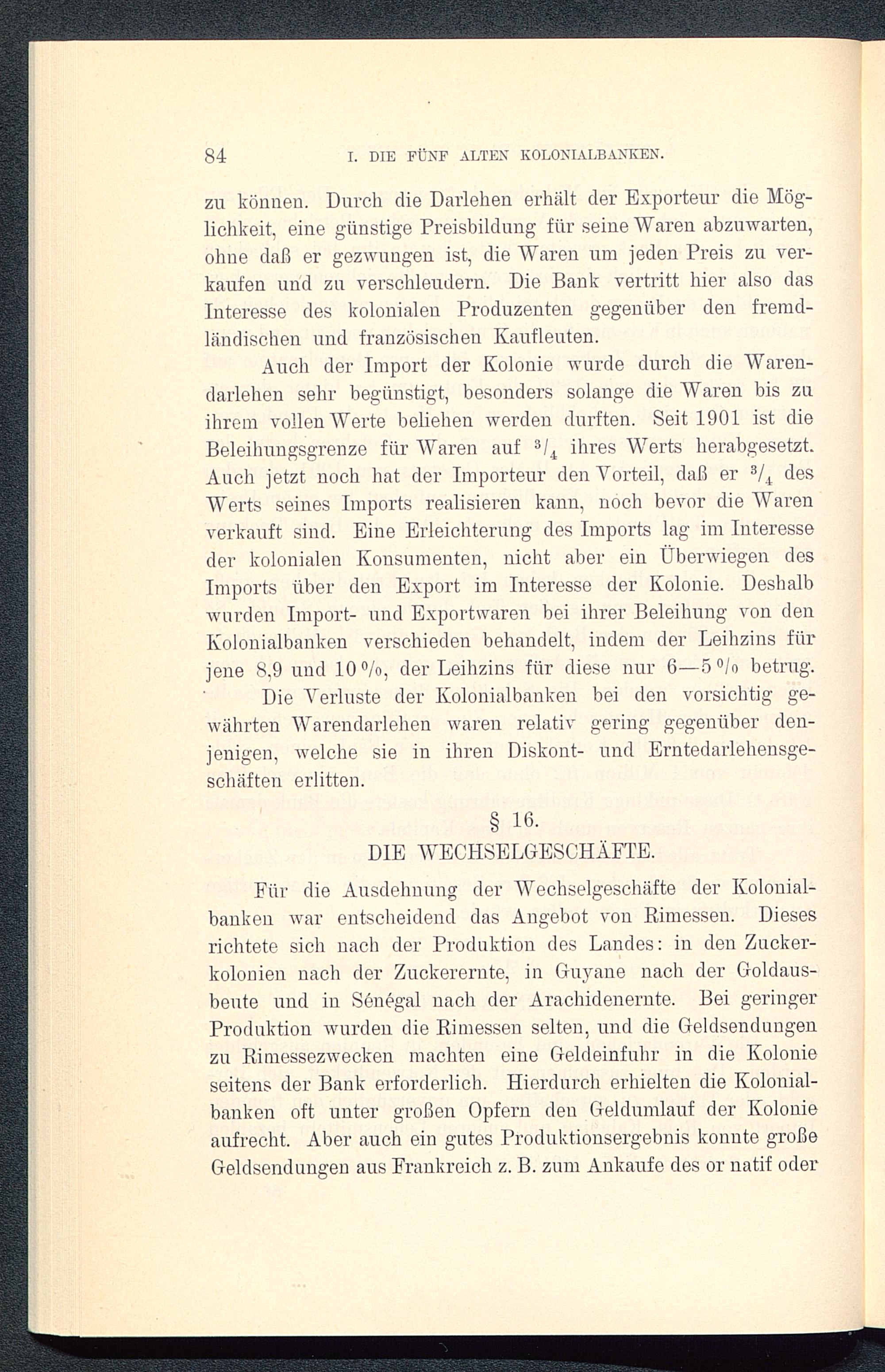 Für die Ausdehnung der Wechselgeschäfte der Kolonial-banken war entscheidend das Angebot von Rimessen. Diesesrichtete sich nach der Produktion des Landes: in den Zucker-kolonien nach der Zuckerernte, in Guyane nach der Goldaus-beute und in Senegal nach der Arachidenernte. Bei geringerProduktion wurden die Rimessen selten, und die Geldsendungenzu Rimessezwecken machten eine Geldeinfuhr in die Kolonieseitens der Bank erforderlich. Hierdurch erhielten die Kolonial-banken oft unter großen Opfern den Geldumlauf der Kolonieaufrecht. Aber auch ein gutes Produktionsergebnis konnte großeGeldsendungen aus Frankreich z. B. zum Ankaufe des or natif oder