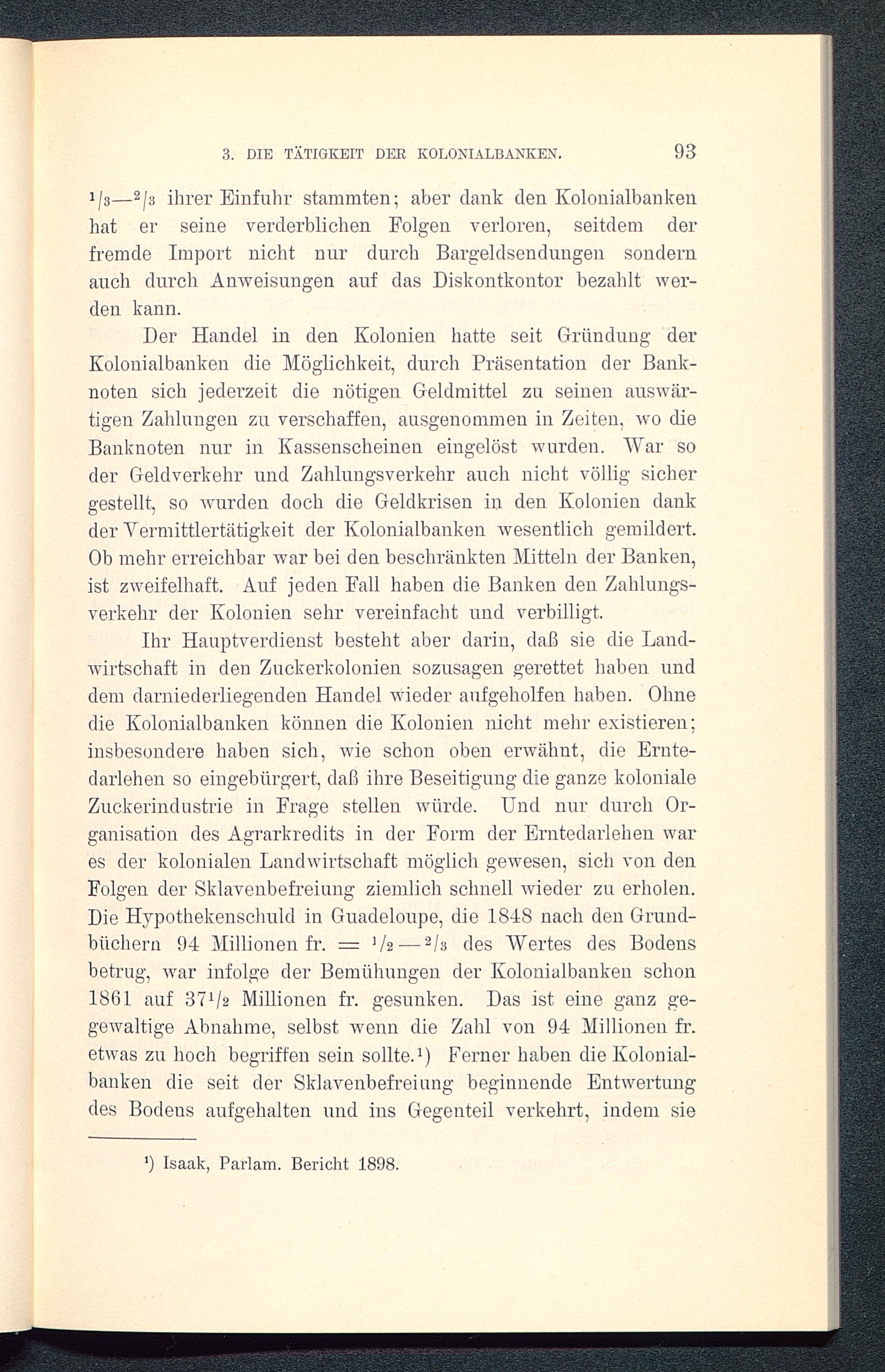 1 js — 2 /a ihrer Einfuhr stammten; aber dank den Kolonialbankenhat er seine verderblichen Folgen verloren, seitdem derfremde Import nicht nur durch Bargeldsendungen sondernauch durch Anweisungen auf das Diskontkontor bezahlt wer-den kann.
