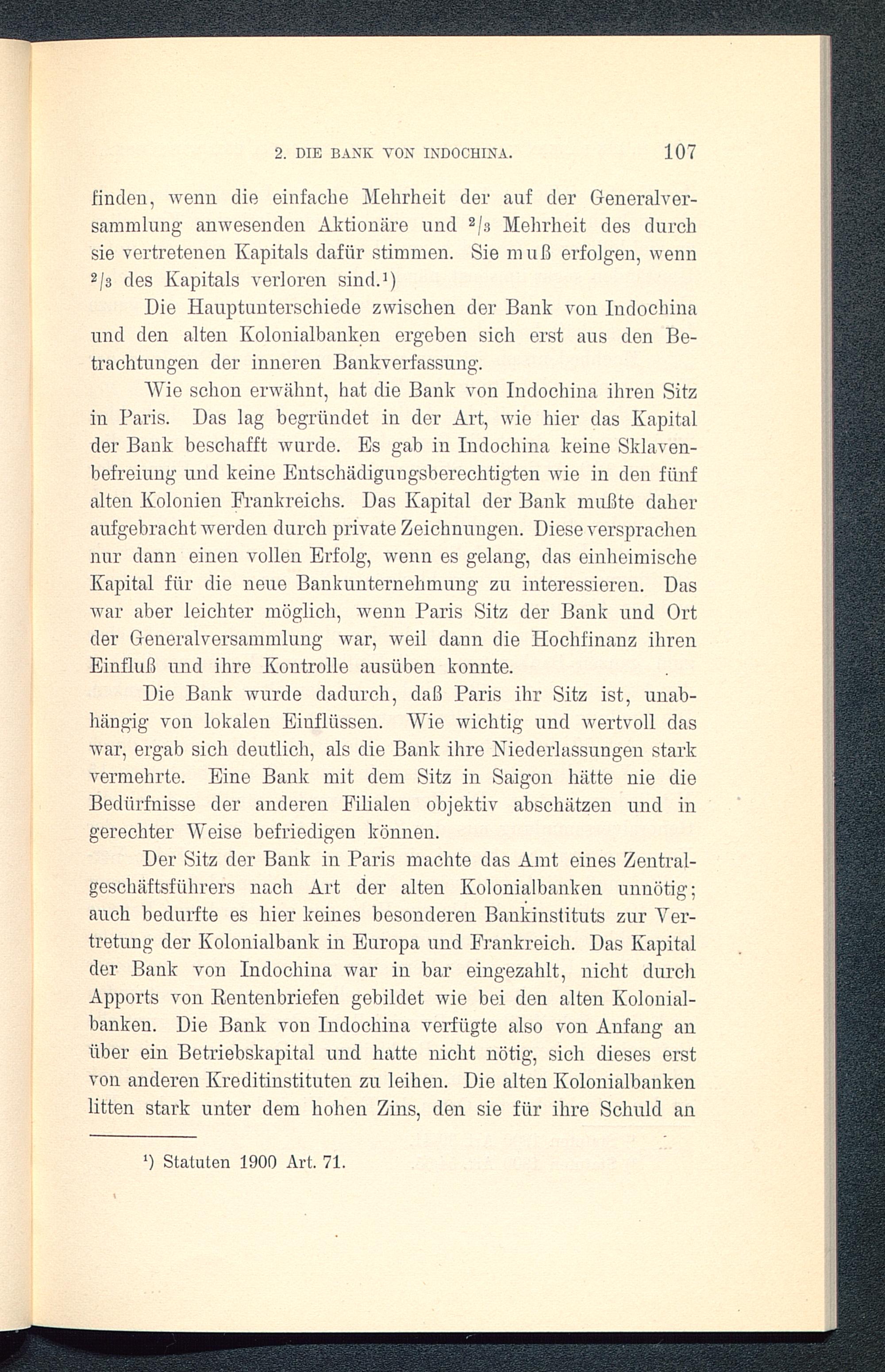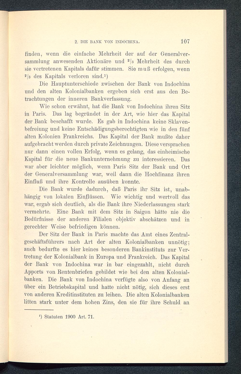 Die Hauptunterschiede zwischen der Bank von Iudochinaund den alten Kolonialbanken ergeben sich erst aus den Be-trachtungen der inneren Bankverfassung.