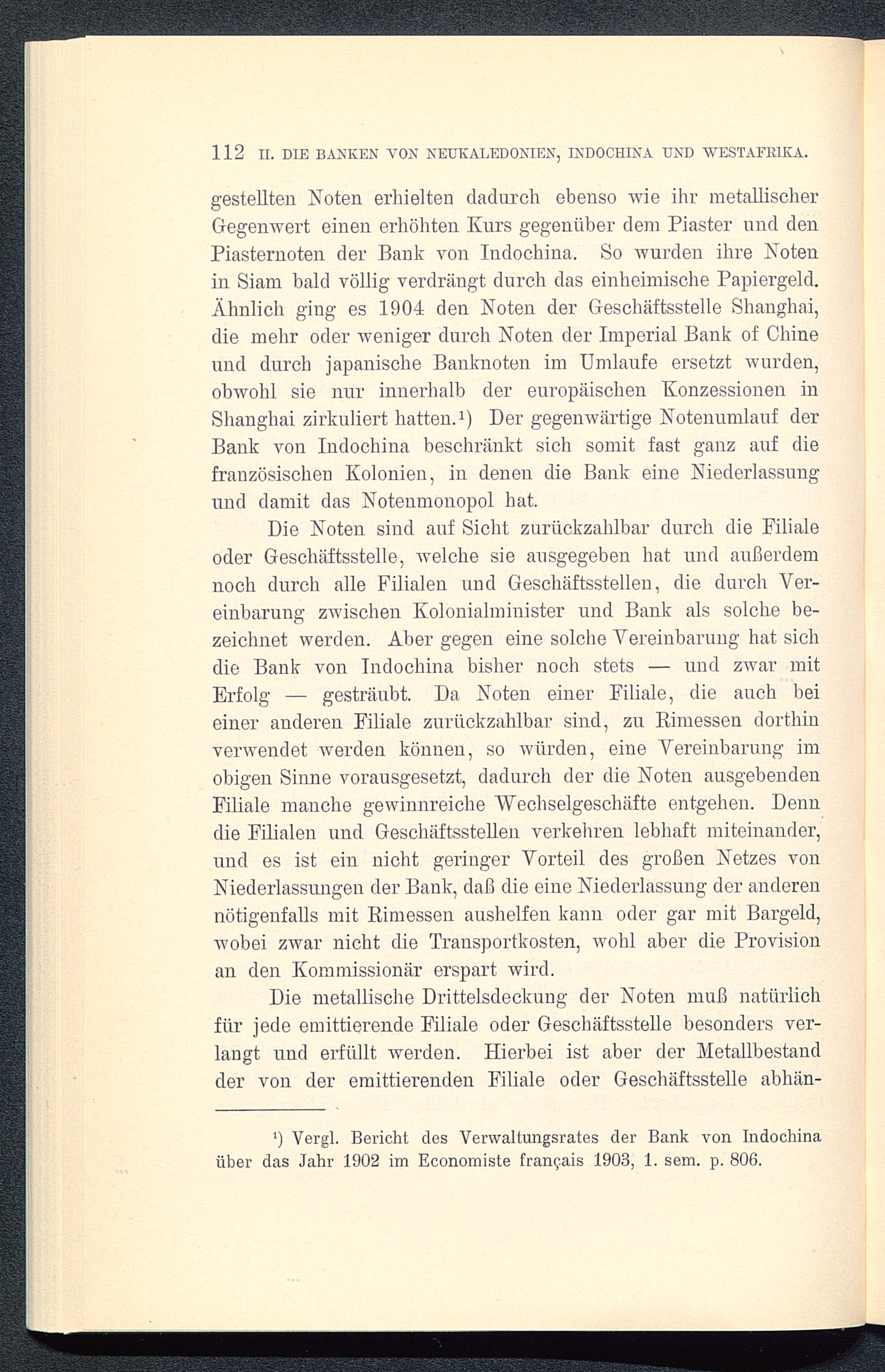 ') Vergl. Bericht des VervvaÜungsrates der Bank von IndochinaUber das Jahr 1902 im Economiste franeais 1903, 1. sem. p. 806.