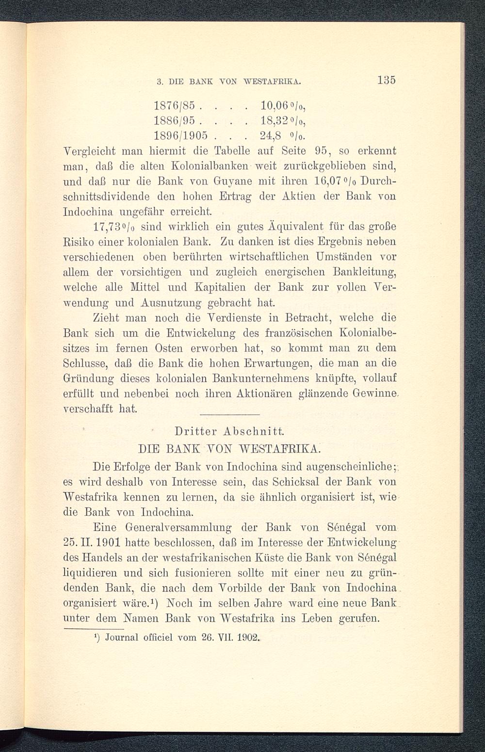 Die Erfolge der Bank von Indochina sind augenscheinliche;es wird deshalb von Interesse sein, das Schicksal der Bank vonWestafrika kennen zu lernen, da sie ähnlich organisiert ist, wiedie Bank von Indochina.