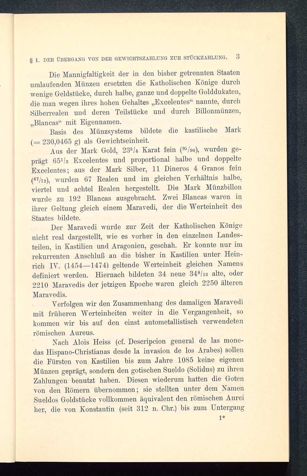 Nach Alois Heiss( cf. Descripcion general de las mone-das Hispano- Christianas desde la invasion de los Arabes) sollendie Fürsten von Kastilien bis zum Jahre 1085 keine eigenenMünzen geprägt, sondern den gotischen Sueldo( Solidus) zu ihrenZahlungen benutzt haben. Diesen wiederum hatten die Gotenvon den Römern übernommen; sie stellten unter dem NamenSueldos Goldstücke vollkommen äquivalent den römischen Aureiher, die von Konstantin( seit 312 n. Chr.) bis zum Untergang