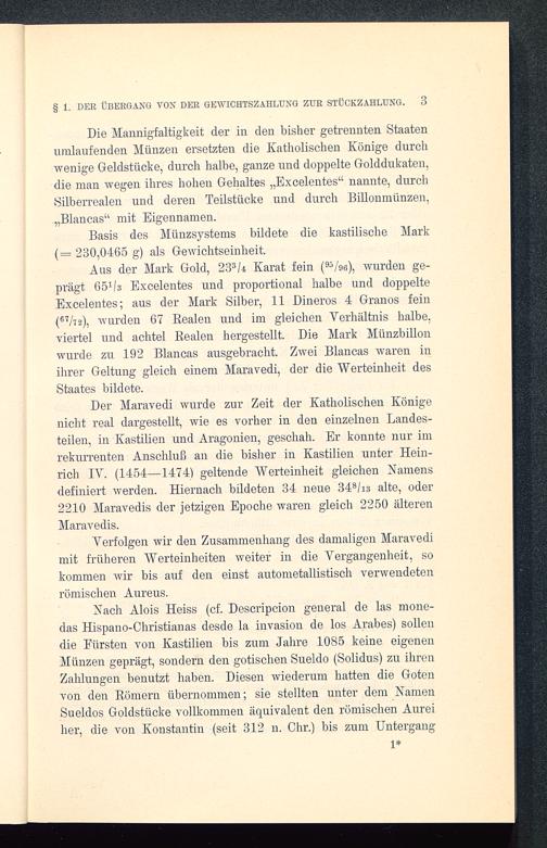 Die Mannigfaltigkeit der in den bisher getrennten Staatenumlaufenden Münzen ersetzten die Katholischen Könige durchwenige Geldstücke, durch halbe, ganze und doppelte Golddukaten,die man wegen ihres hohen Gehaltes ,, Excelentes" nannte, durchSilberrealen und deren Teilstücke und durch Billonmünzen,,, Blancas" mit Eigennamen.