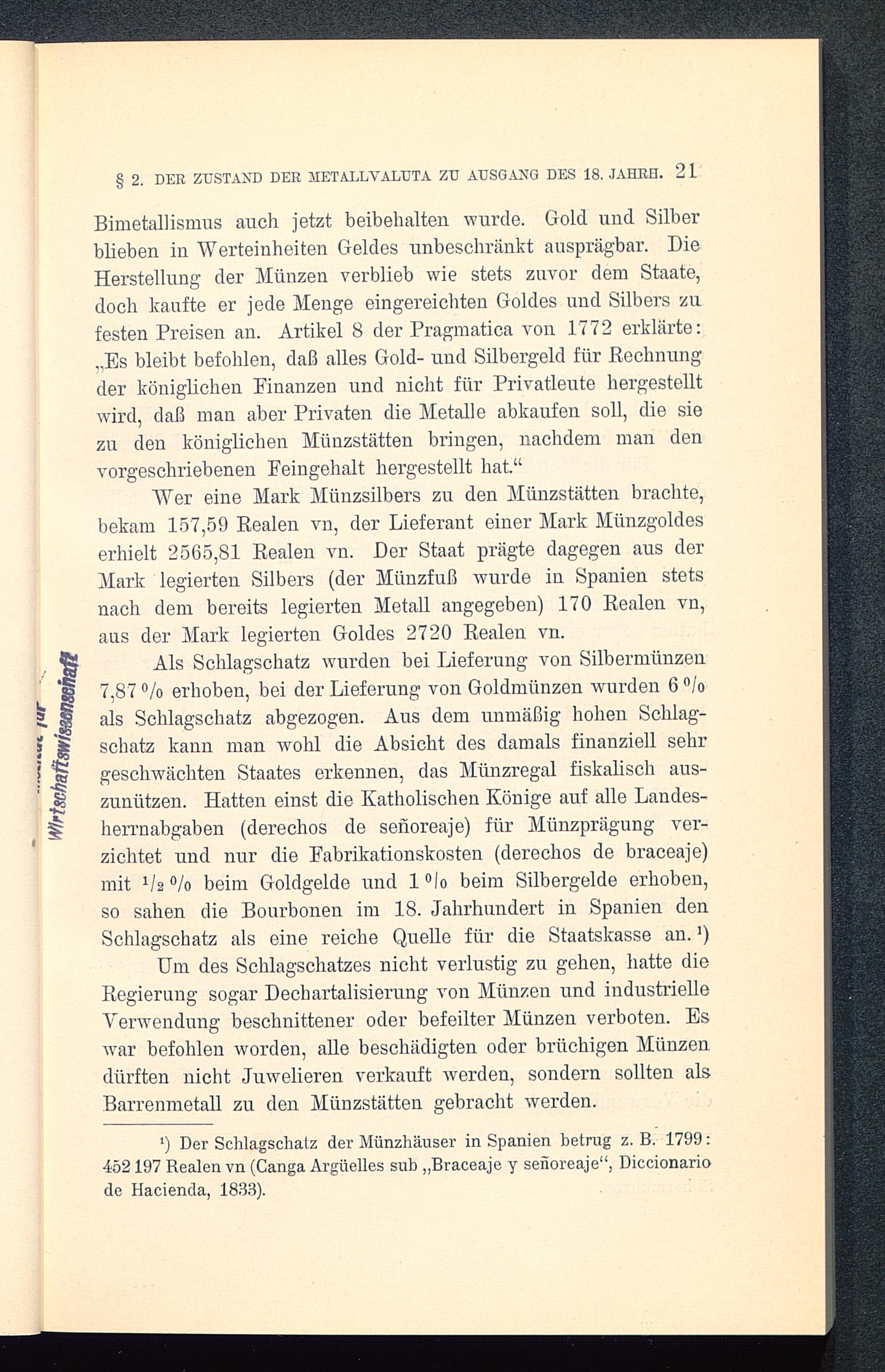 1) Der Schlagschatz der Münzhäuser in Spanien betrug z. B. 1799:452 197 Realen vn( Canga Argüelles sub ,, Braceaje y señoreaje" , Diccionariode Hacienda, 1833).