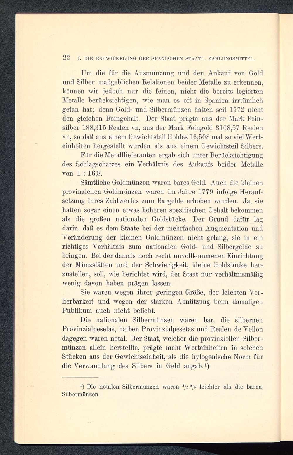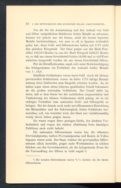 22 I. DIE ENTWICKELUNG DER SPANISCHEN STAATL. ZAHLUNGSMITTEL.