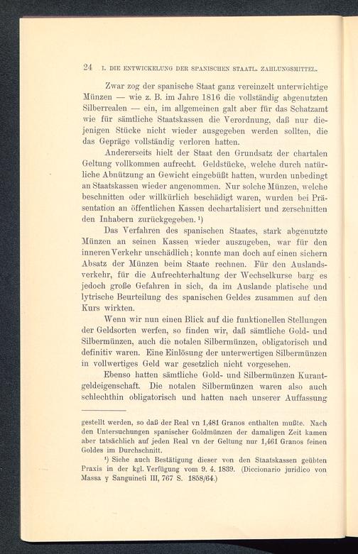 24 I. DIE ENTWICKELUNG DER SPANISCHEN STAATL. ZAHLUNGSMITTEL.