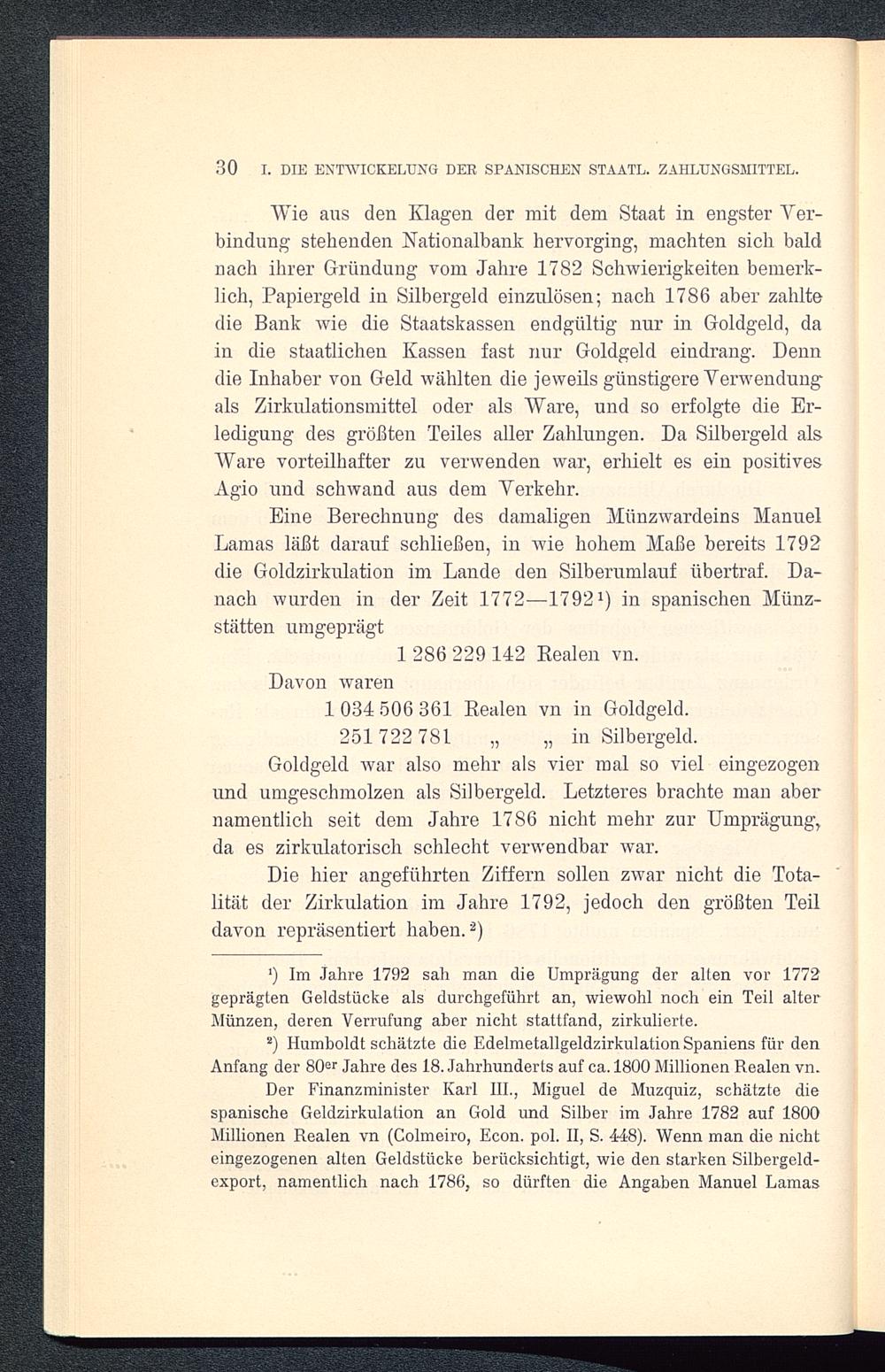 30 I. DIE ENTWICKELUNG DER SPANISCHEN STAATL. ZAHLUNGSMITTEL.