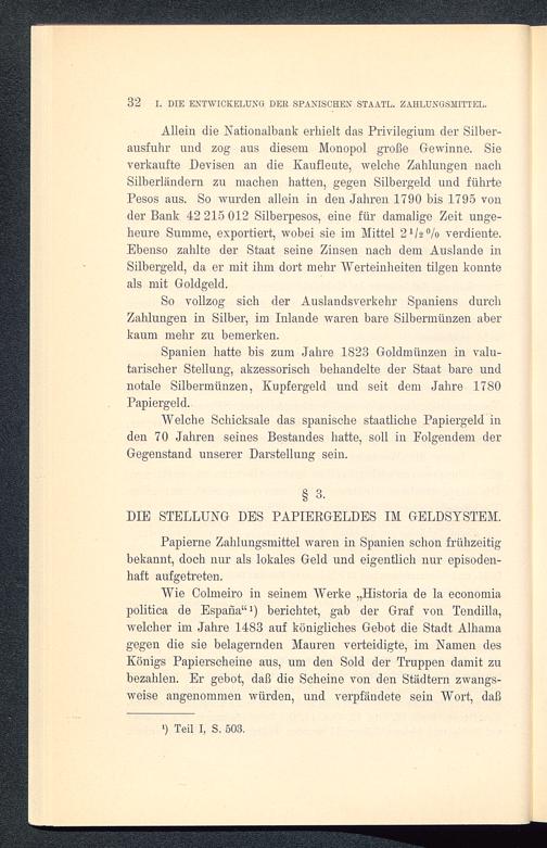 Welche Schicksale das spanische staatliche Papiergeld inden 70 Jahren seines Bestandes hatte, soll in Folgendem derGegenstand unserer Darstellung sein.